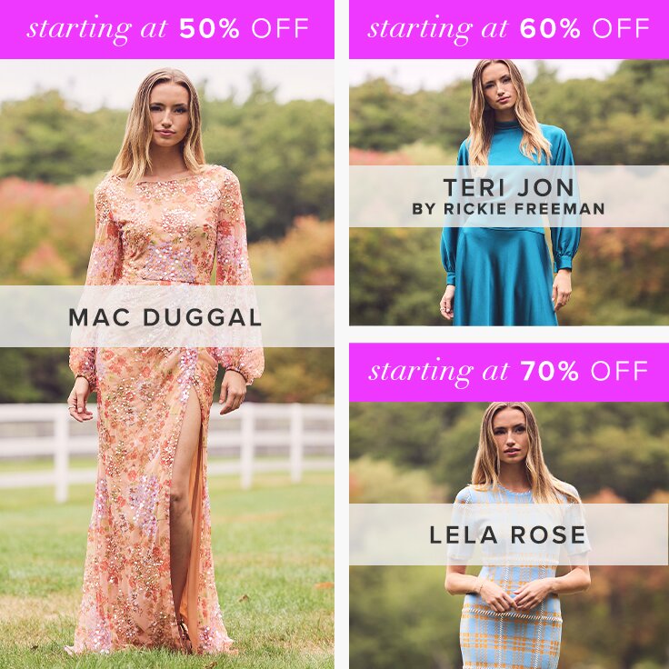 Plus, Forte Cashmere. The Shoe & Accessory Shop. Mac Duggal, Teri Jon by Rickie Freeman, & Lela Rose.
