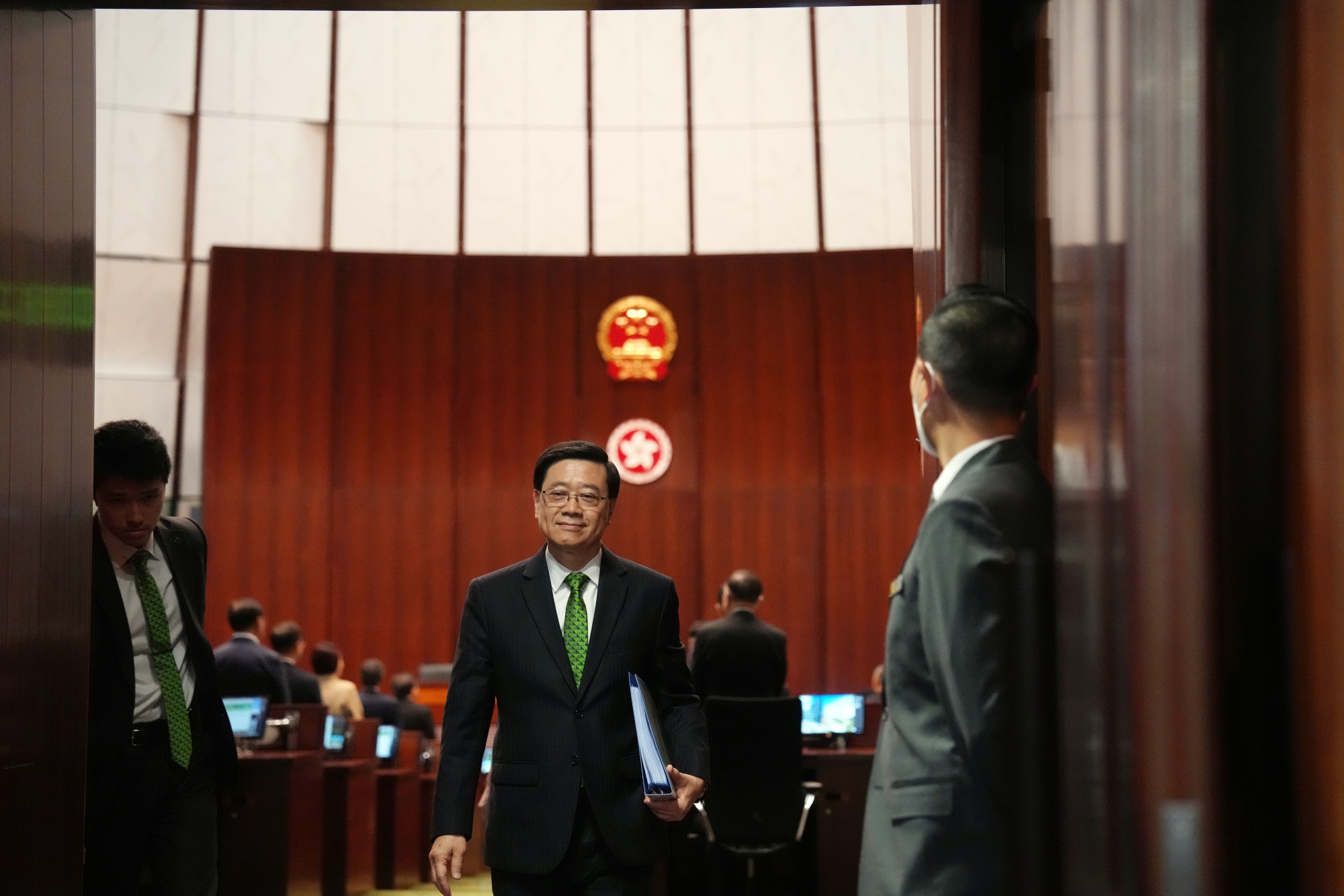 John Lee after delivering his policy address in Hong Kong on Sept. 17. Photographer: Lam Yik/Bloomberg