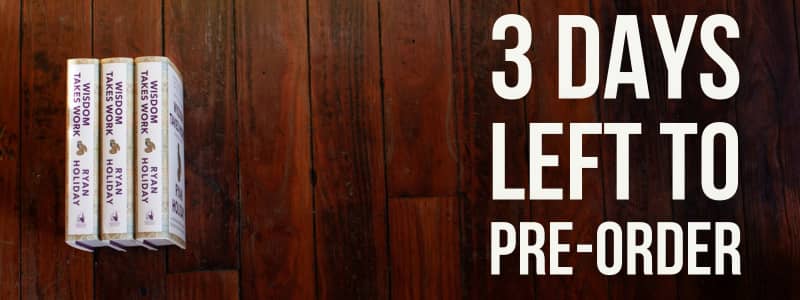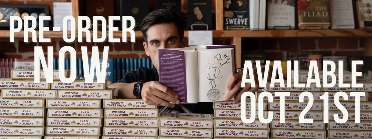 Signed first-edition copies of Ryan Holiday’s new book Wisdom Takes Work are available for preorder, while supplies lasts!