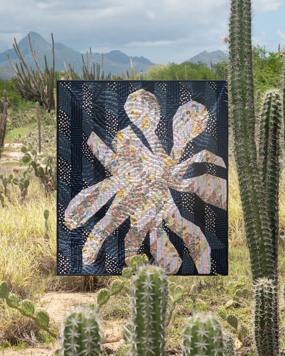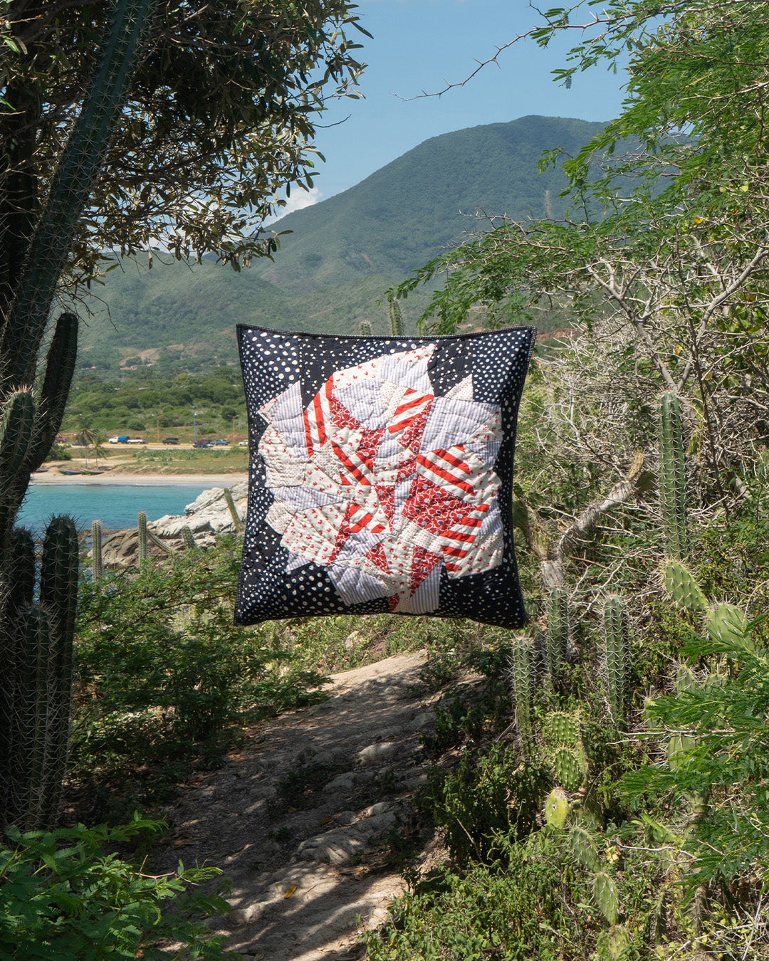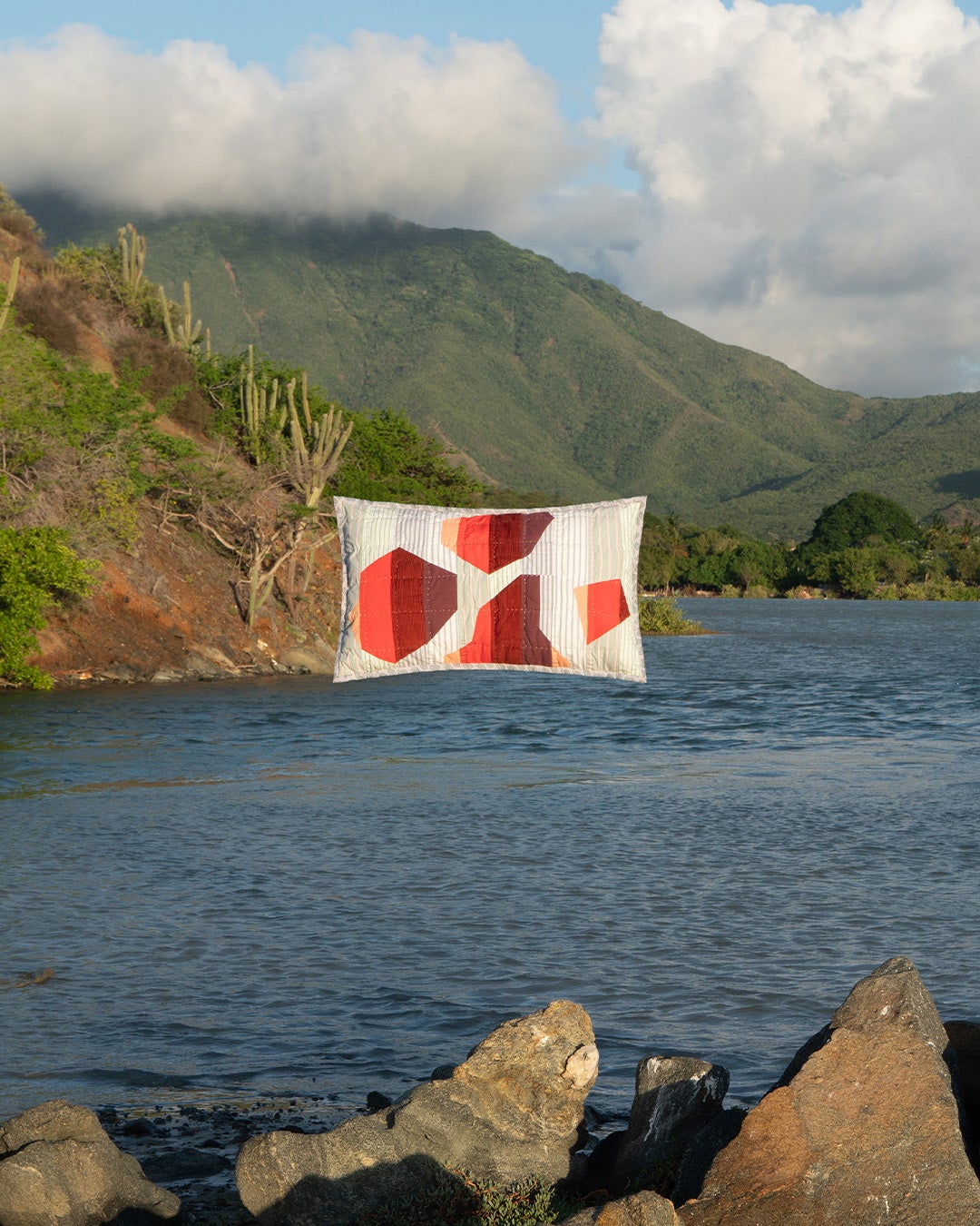 For Round 29, designer Jessica Ogden studied blooms closely, dissecting them to understand their rhythm and translating that observation into textiles. Each quilt begins as a hand drawing in Jessica’s studio in Jamaica. The fabrics are then chosen from A.P.C.’s leftover production stock and assembled like watercolors, combining shades and textures to create new compositions. The pieces are brought to life by A.P.C.’s workshop in India, whose craftsmanship allows for intricate and inventive patch-work work. This round was photographed by Alfredo Piola on Margarita Island, Venezuela.