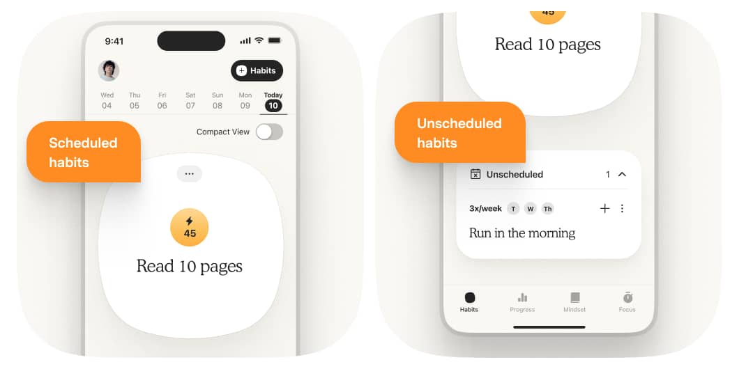- If you have habits that are not scheduled for the day, but you still want to access them to track, you will find them in the “Unscheduled Habits” drawer below your Scheduled habits