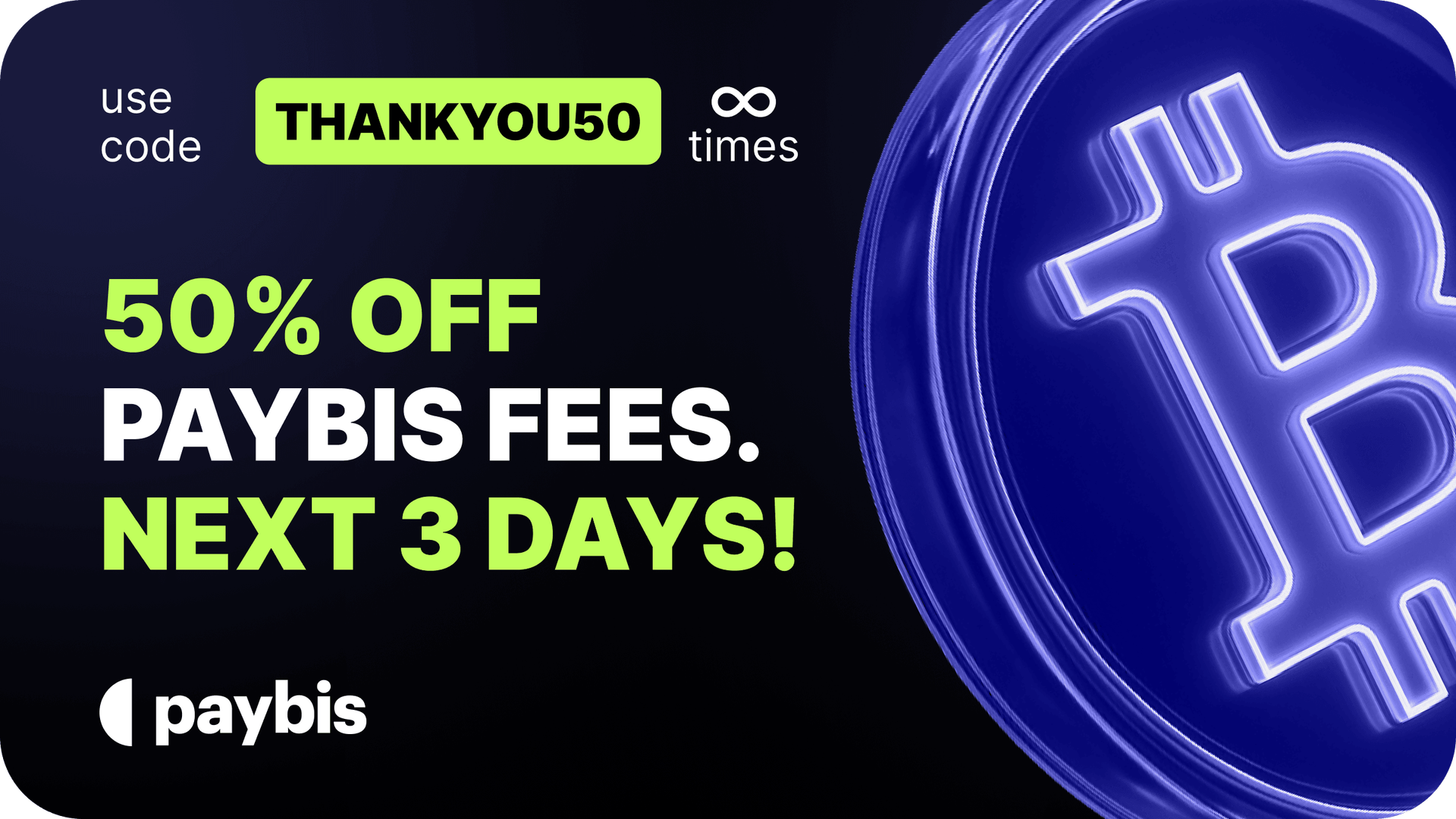 As a small token of our appreciation, we’re offering a special 50% discount on Paybis fees for the next 3 days.