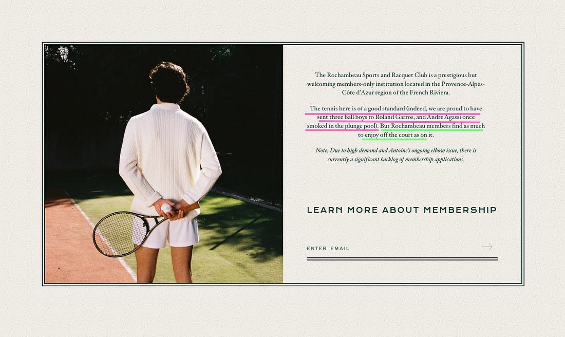 Remember when Black Friday was on a *cof cof * Friday after Thanksgiving in the United States? When thousands of people waited outside retail stores in the cold at 5AM? When the norm was chaos, arrests and grannies punching strangers just to score a 90% off TV? Now it’s a month-long yawn. No chaos. No fights. No viral news clips of grown adults wrestling over a $99 TV (*Fun times*). Not even a goddamn pity segment on CNN showing the human circus. You see, Black Friday used to be an American thing. Now? It’s Global. Like glitter. It just… spreads. Now it’s Black Week, Black Month, Black Whatever. Somehow, there’s even a White Week. I live in Portugal, and I swear I’m not making this up. I heard Hyundai Portugal on the radio promoting White Week the other day — Because apparently Black Friday wasn’t confusing enough. In fact, right now, as you’re reading this, somewhere a marketer is proudly pitching his marketing team a 42-slide deck. And it’s called ‘Why Our 2026 Black Friday Begins in January’—and everyone’s nodding. Well...I like doing things differently. So today I’m announcing new. Forget Black Friday. Black Month, Black Week or Black Whatever. Today, we celebrate Yada Yada Yada Friday—the holiday for people who’ve heard it all before. Because if Hyundai can make up shit like a White Week, I can also make up shit like Yada Yada Yada Friday. And because I’m inventing holidays now, I might as well invent insane deals. For 24 hours only, grab Dangerous Ideas To Write Like a Copywriter—the 4-hour crash course for bootstrapping business owners—for 85% off. This is a pay-what-you-want deal. The usual minimum is $59.99. Today, the new minimum is just $9. Yada yada yada… get it while it lasts. And because today is Yada Yada Yada Friday here’s also free chapter of Dangerous Ideas To Write Like a Copywriter—the 4-hour crash course for bootstrapping business owners. This is just one chapter—think of it as a free peek behind the curtain. My course won’t turn you into a 20-year pro copywriter overnight. But it will teach you subversion: the shortcuts, hacks, and subtle tricks that make people actually read every word you write. ㋡㋡㋡㋡㋡㋡㋡㋡㋡㋡㋡㋡㋡㋡㋡㋡㋡㋡㋡㋡㋡㋡㋡㋡㋡㋡㋡㋡㋡㋡㋡㋡㋡㋡㋡㋡ The Angostura Bitters label is too god damn big for the bottle. But it turns out it was born out of a (happy) mistake. Angostura was an invention of a German physician called Johann Siegert. In 1820, Siegert moved to Angostura, Venezuela. He did it to help Simón Bolívar in his war to liberate Venezuela from Spanish rule. During this period Siegert treated Bolivar’s soldiers and sailors. But many of these men suffered from seasickness, stomach ailments and malaria. So Siegert combined gentian with Venezuelan herbs and spices. The result was a formula for a bitter herb liquor that relieved seasickness and stomach ailments. And helped Bolivar’s troops fight malaria. In 1870 Siegert died. So when his three sons Carlos, Alfredo and Luis, took over the business they reframed Angostura Bitters as an cocktail additive, not as a medicinal product. One day, to promote the business the Siegert brothers decide to enter a competition. So one of the brothers designs a new bottle. And the other one designs a new label. But the brothers forgot to discuss one very important thing: bottle and label sizes and dimensions. So by the time bottles were done and labels were printed it was too late to fix the mistake. This meant the Siegert brothers had to be a lil creative. So they fit the small bottle with the oversized label. Then submit Angostura to the competition. The Siegert brothers *obviously* didn’t win the competition. But *surprise, surprise* one of the judges told them something they’d never forget. The judge said, “No one in this business would be stupid enough to make such a mistake. So keep it as it is. This is what we call signature labelling.” The Siegert brothers followed his advice. And it turns out the judge was spot on the money. Because the Angostura Bitters label hasn’t changed. And today you can find Angostura on nearly every bar in the World. The lesson here is simple. The human brain is wired to notice things that stand out. Psychologists call this the Von Restorff Effect. Which is why illogical and brave always beats mediocre but safe ideas. Naturally, this principle also applies to copywriting. ㋡㋡㋡㋡㋡㋡㋡㋡㋡㋡㋡㋡㋡㋡㋡㋡㋡㋡㋡㋡㋡㋡㋡㋡㋡㋡㋡㋡㋡㋡㋡㋡㋡㋡㋡㋡ Dangerous example:If everyone in your industry sounds too corporate-y, do the complete opposite. Inject a lil more personality into your website copy. The Rochambeau Club does this brilliantly. This is the most gutsy, original, distinct product launch I’ve seen in a gazillion years. A fictional tennis club to sell a rosé wine brand called *wait for it*... Racquet Rosé. ⇝ “The tennis here is of a good standard (indeed, we are proud to have sent three ball boys to Roland Garros, and Andre Agassi once smoked in the plunge pool). But Rochambeau members find as much to enjoy off the court as on it.” ⇝ “Note: Due to high demand and Antoine’s ongoing elbow issue, there is currently a significant backlog of membership applications.” BONUS DANGEROUS IDEA: The inherent drama is “the most direct route to the mind of the reader”.If I was the copywriter behind Breeo’s website this is how I’d rewrite their hero headline “Smokeless fire pit” into something a bit more relatable to their audience. 1. Attention Grabber⇝“Breeo Has 3 Words” 2. Emotional Reaction Of Using Your Product (Inherent Drama)⇝ “To Get Your Dad Senses Tingling.” 3. Clarify What They’re Buying ⇝ “Smokeless Fire Pit” Before |