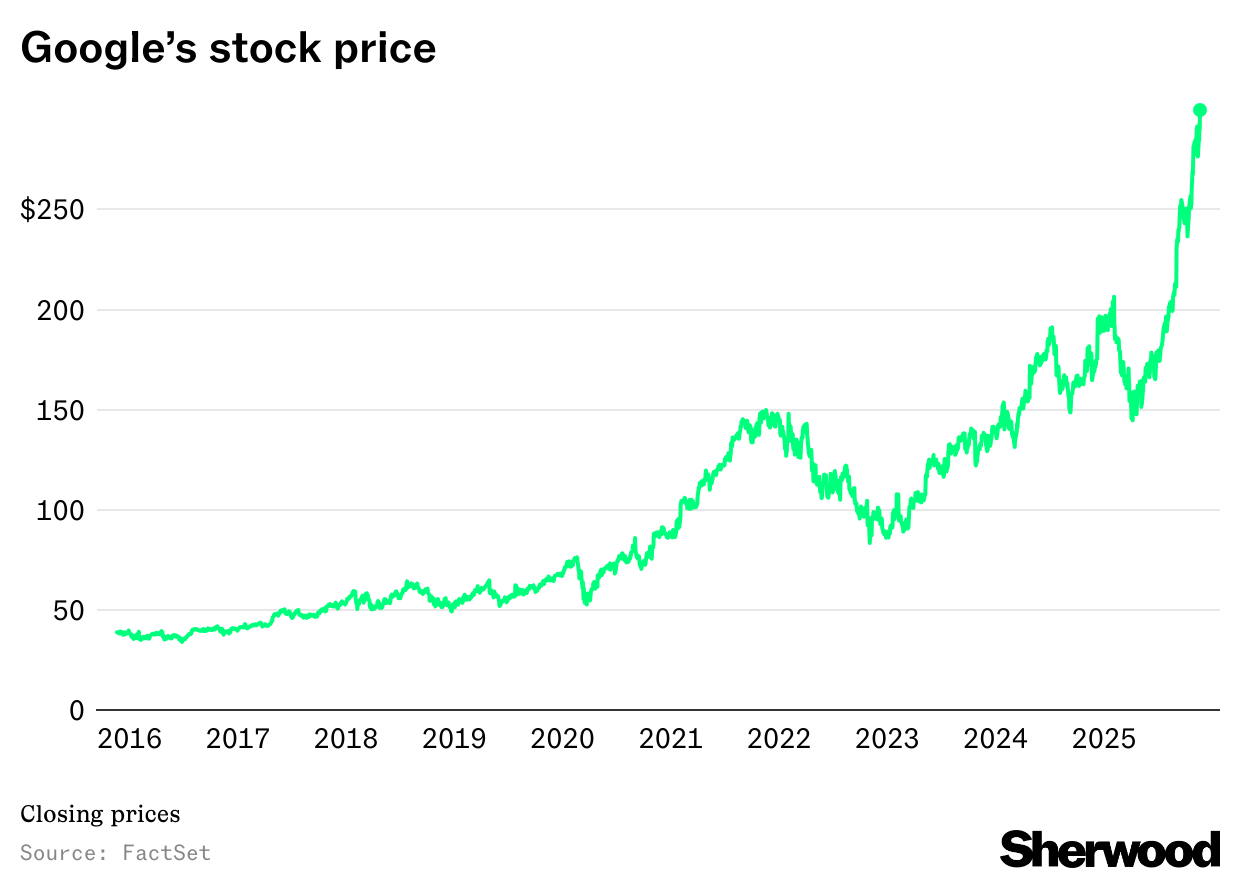 Google closes at a record high Google parent Alphabet hit a record closing high of $299.66 today, continuing what’s been a very good run for it recently.