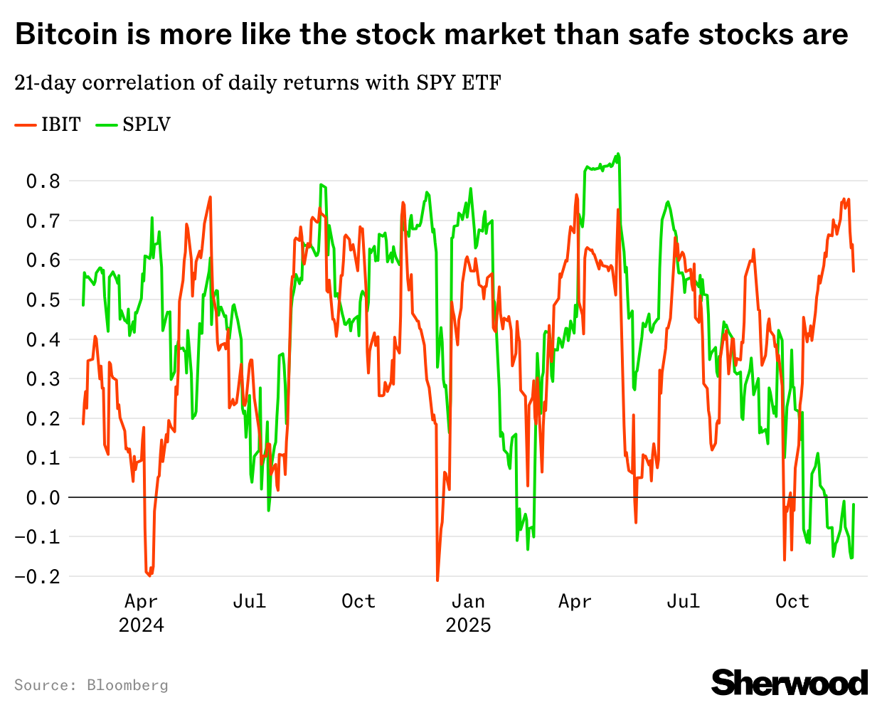 Bitcoin has been strongly correlated with the S&P 500; the low-volatility stocks within the S&P 500 have not.