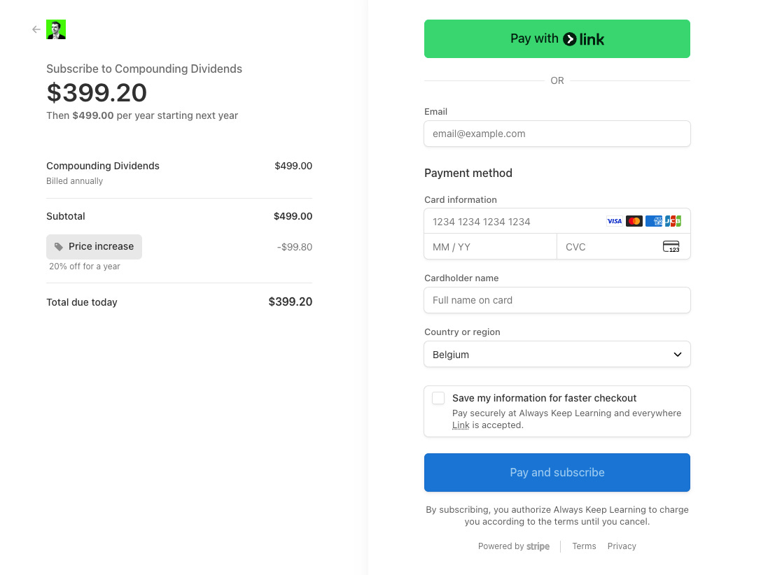 We are very happy with the dividend growth of Our Portfolio: The goal is to receive $100,000 in yearly dividends. The good news? I am sure we will achieve this over time. The sad news? We decided to increase the price of Compounding Dividends. But we have some things to celebrate today: 🛍️ It’s Black Friday today That’s why I’m giving you 48 more hours to take advantage of the lower price. ⏰ Tomorrow at midnight ET, the price will rise for good. Here’s how you can take advantage: