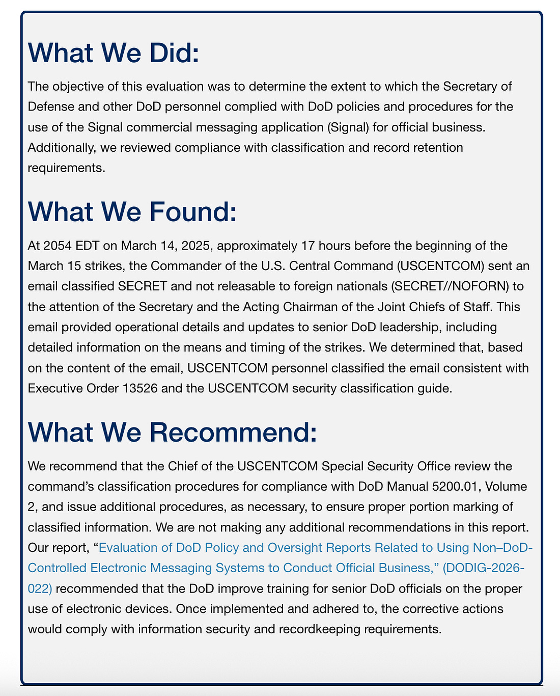 This post started out as an update on what we know about Pete Hegseth’s order to strike boats allegedly being used for drug smuggling in the Caribbean. Then, this morning, without warning, as these things happen, the Department of Defense’s Inspector General released the report on Signalgate. More bad news for Hegseth. (Although I haven’t read the full report yet, I have read parts of it, and I’ve given you some preliminary thoughts on what happened here.) It seemed like we would have a nice, neat post for tonight about developments at DoD. Of course, that’s not how things happen these days. By the end of the day, there was also news that a Virginia grand jury had declined to indict—again after the original indictment was dismissed by a judge because Trump’s appointee Lindsey Halligan wasn’t properly in office—New York Attorney General Letitia James. Then came news the Supreme Court had ruled in the Trump administration’s favor on redistricting in Texas. If you’re already exhausted two paragraphs into tonight’s post, don’t be too hard on yourself. It has been another one of those days. This post is long—I apologize for that—but it’s written in four parts, so you can read it in digestible chunks. But don’t skip the last one! Paid subscriptions keep Civil Discourse independent and permit me to dig deeply into fast-moving legal and political developments. If you find this work useful, I’d be grateful for your support. Becoming a paid subscriber helps me keep writing for our whole community. Signalgate Inspector General’s Report: The IG’s Report is out on Signalgate, the 2025 incident where a group of senior Trump administration officials, including Defense Secretary Pete Hegseth and Vice President J.D. Vance, discussed sensitive U.S. military strike plans against Yemen in an unapproved Signal group chat, a conversation that was revealed to the public after the editor-in-chief of The Atlantic, Jeffrey Goldberg, was inadvertently added to the group. The incident raised concerns about the use of commercial messaging apps for government communications and the potential for leaks of classified information. Here’s the executive summary of sorts that’s at the top of the report: The bottom line is that sending information about the Yemen strike through Signal put troops at risk. That should be a full stop right there. It would have been in any other administration. But this president was willing to accept that behavior and keep his Secretary of Defense in place. That Secretary shared classified information on his personal phone (it’s weak sauce to claim he has classification authority so all should be forgiven. Even if Hegseth could declassify it, sending information out in this fashion with American troops’ lives at risk is the height of bad judgment, and there was no legitimate reason to do so). Moreover, Hegseth did not turnover his phone to the IG and wasn’t cooperative with the investigation. He provided a statement, but he didn’t sit for an interview. None of this is what Americans are entitled to expect from a public servant or what a president should demand of his appointees. Hegseth claims the IG’s report exonerated him, sort of like Trump claimed the Mueller Report exonerated him. That didn’t happen in either case. The IG’s report says the Secretary used his personal cell phone to send classified information about a strike to people who didn’t all need to see it and, most damning, that he put service members in harm’s way when he did it. It’s clear that he was on base at the time, that he had plenty of secure means of communication. But he chose not to use them. Let’s underscore it: Hegseth didn’t let the IG see his phone. He was never interviewed; he provided a written statement. The whole matter came to light because Jeffrey Goldberg at The Atlantic, the journalist who was mistakenly added to the chat, alerted us after the danger to troops had passed. He was in the group chat and had the tea. Inspectors General tend to be at least mildly restrained in their reports, and this one is no exception. But there’s plenty to read into it. An exoneration is not one of the choices. Hegseth endangered troops, violated the Federal Records Act and DoD rules, and was less than helpful and candid in how he responded to the investigation. In any other administration, he would be gone already and we wouldn’t have to consider the ongoing saga of his involvement in the attacks on boats he claims are engaged in narcoterrorism. Admiral Bradley’s Defense of the Attack: Admiral Frank M. Bradley was on the Hill today, trying to explain the September 2 military strike that has come into question. The Wall Street Journal reported Wednesday night that Bradley concluded that the survivors of the first strike on the boat were trying to continue a drug run, which made them legitimate targets. Rep. Jim Himes, the top House Intelligence Committee Democrat said after his briefing with the Admiral that “What I saw in that room was one of the most troubling things I’ve seen in my time in public service.” He continued, “You have two individuals in clear distress, without any means of locomotion, with a destroyed vessel, who are killed by the United States.” Democratic Senator Jack Reed released this statement: “I am deeply disturbed by what I saw this morning. The Department of Defense has no choice but to release the complete, unedited footage of the September 2nd strike, as the President has agreed to do. This briefing confirmed my worst fears about the nature of the Trump Administration’s military activities, and demonstrates exactly why the Senate Armed Services Committee has repeatedly requested – and been denied – fundamental information, documents, and facts about this operation. This must and will be the only beginning of our investigation into this incident.” It is clear that this is not going away. Hegseth is not apolog