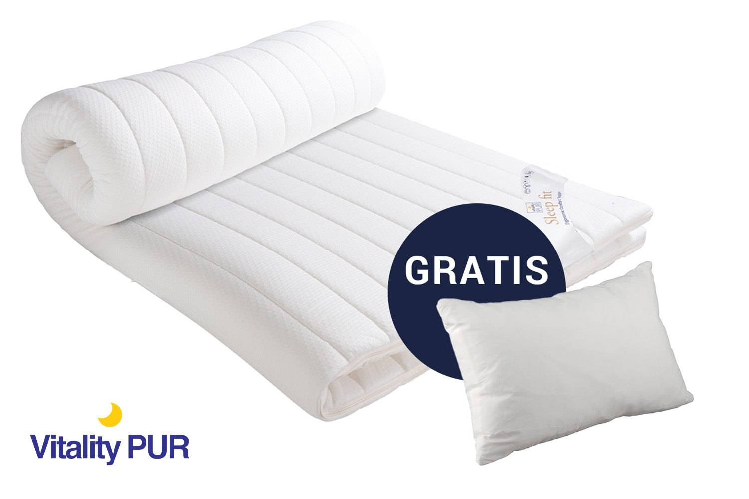 Traagschuim topdekmatras - Vitality Pur | Met gratis hoofdkussen(s) | ✔️ Drukverlagend: vormt zich naar lichaamscontouren ✔️ Voor alle slaaphoudingen ✔️ Anti-huisstofmijt | 99,95 | i.p.v. 199,95 - 51% | |