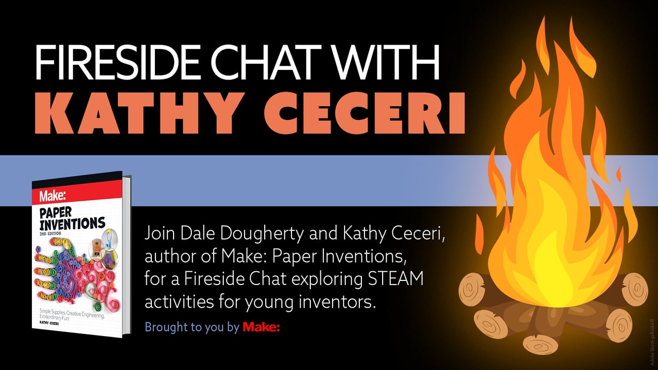 Join us for a Fireside Chat with Dale Dougherty and Kathy Ceceri, author and educator, as she shares the story behind the updated and revised edition of a Make: classic, Paper Inventions. This new edition ignites imagination with hours of hands-on STEAM activities for young inventors and busy adults.
