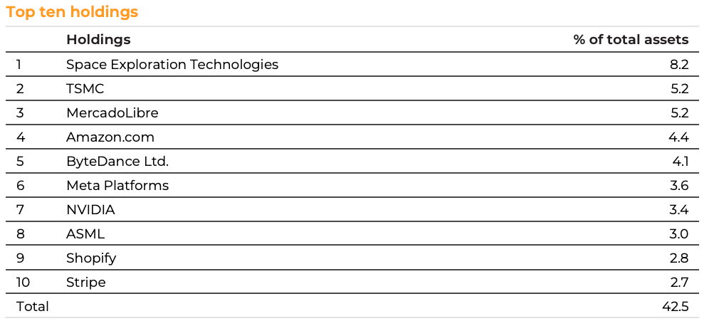 Let’s give you some interesting investment ideas for the new year. 20. Scottish Mortgage Investment Trust ($SMT)Company ProfileScottish Mortgage is a publicly traded investment trust. They identify and invest in ‘exceptional’ public and private companies that are building the future of the global economy. Via $SMT, you get exposure to companies you could otherwise never get exposure to. Think about companies like SpaceX and ByteDance (TikTok). Investment Rationale