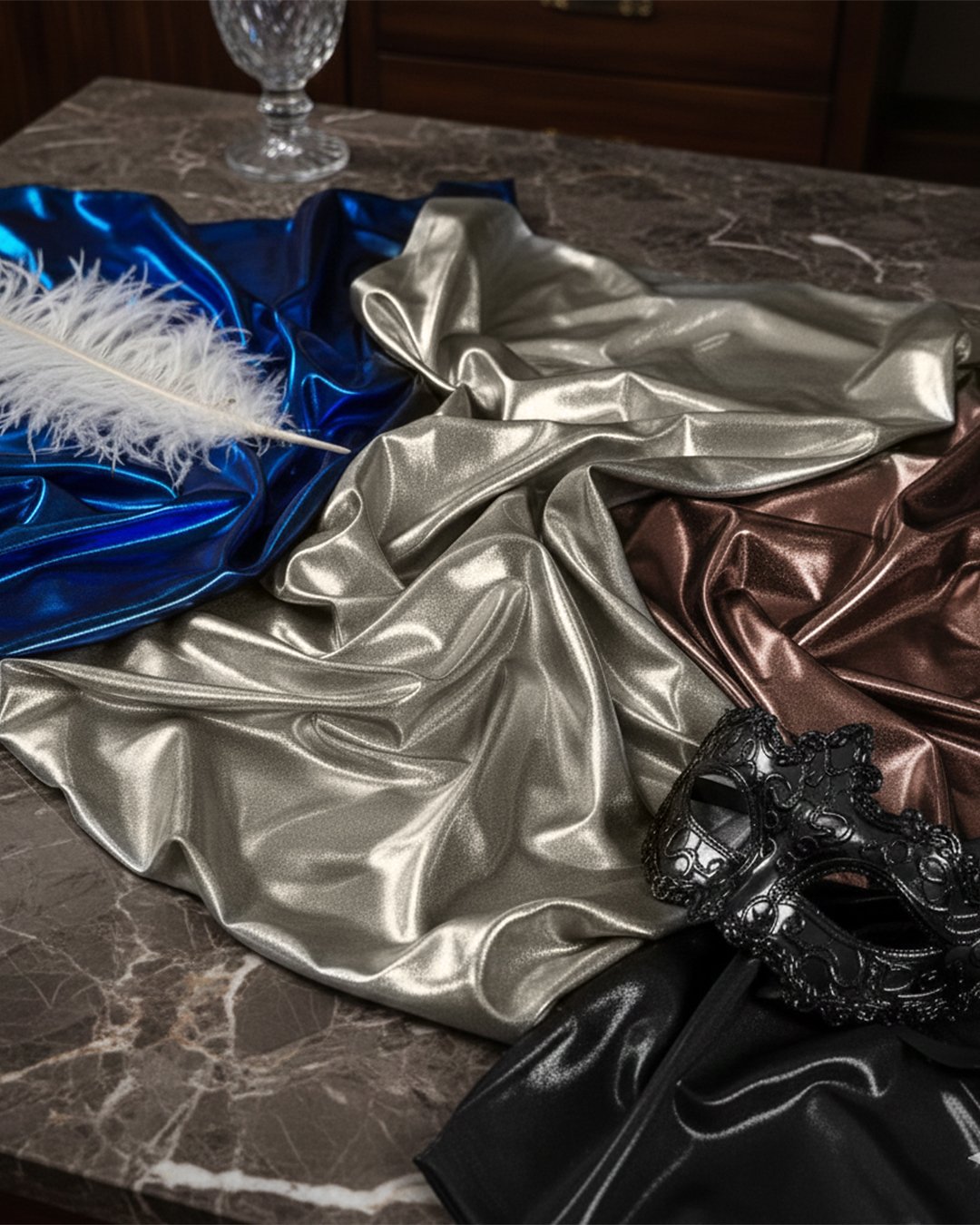 Czas na karnawał w wersji awangardowej elegancji. Oczywiste zdobienia zastępujemy magnetycznymi, płynnymi strukturami, które rzeźbią sylwetkę, nadając jej futurystyczny charakter. Prezentujemy kolekcję dzianin metalicznych – materiałów o hipnotyzującym wykończeniu, które pracują z każdym ruchem. Ich powierzchnia przypomina płynną taflę metalu, dając nieograniczone pole do popisu przy projektowaniu rzeźbiarskich form, awangardowych sukni typu bodycon czy nowoczesnych topów.