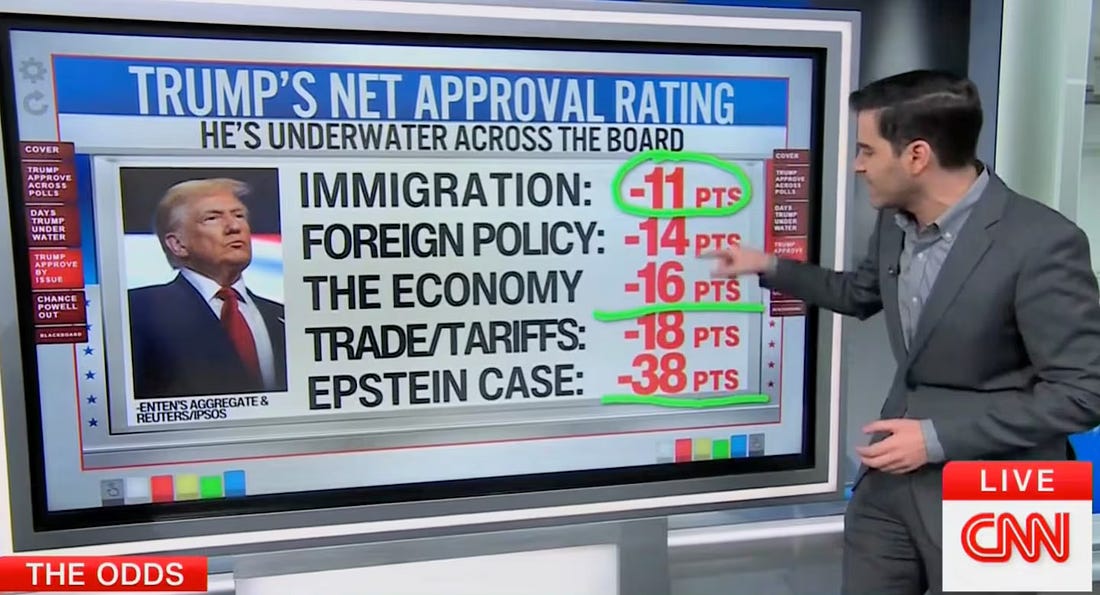 PN is supported by paid subscribers. Become one ⬇️ The fundamental dynamic of the first year of Trump’s second term was that the success he had accruing near dictatorial power came at this cost of his political popularity, which has fallen so low that he’s now openly musing about trying to cancel the midterm elections. Trump to Reuters about the midterm elections: "When you think of it, we shouldn't even have an election." www.reuters.com/world/us/fiv... Thu, 15 Jan 2026 16:36:42 GMT View on BlueskyNot only is Trump’s approval rating 16 points underwater — worse than any other modern president a year into their term — but because he’s losing on every key issue it’s hard to see those numbers improving anytime soon.