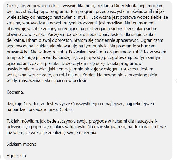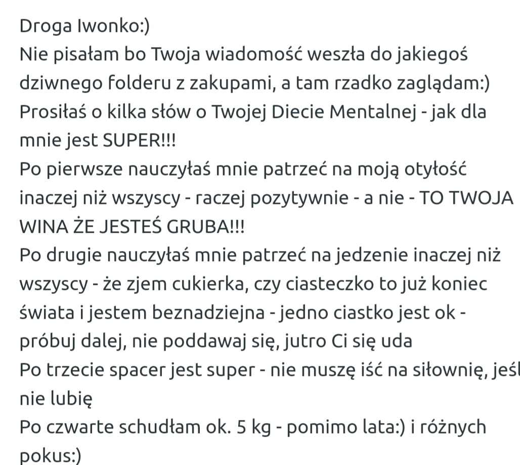 a dopiero zmiana myślenia, relacji ze sobą i ze swoim ciałem