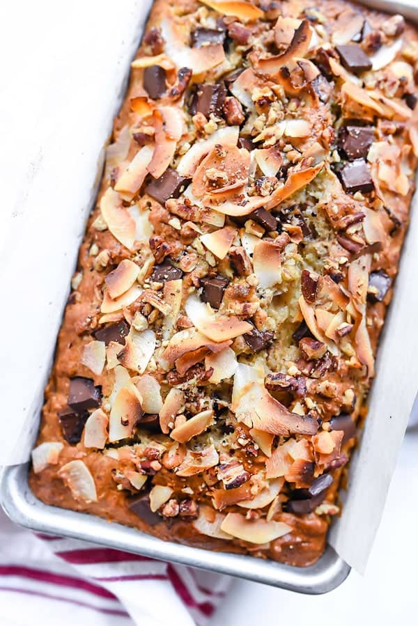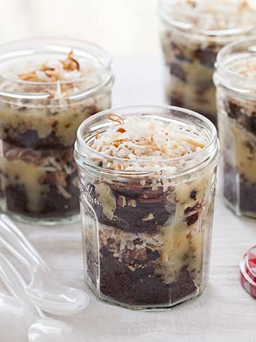 This cake has all of the flavors I love — chocolate, more chocolate, nuts, and coconut. Just like my fave Almond Joy candy bar!