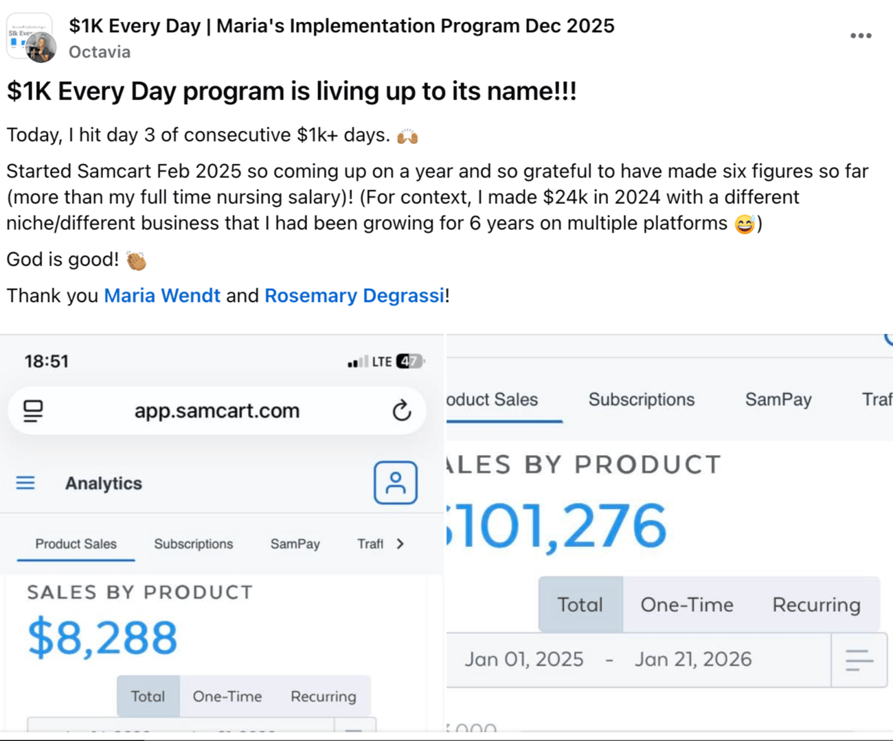 Our most recent one was my student Jordan, who made over $100k only working 2 hours a day, due to health issues and time spent parenting.