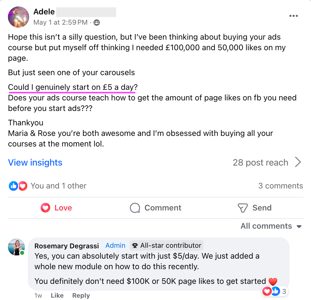iza, Rose & I truly believe everyone should be running ads, even if you’re just getting started.