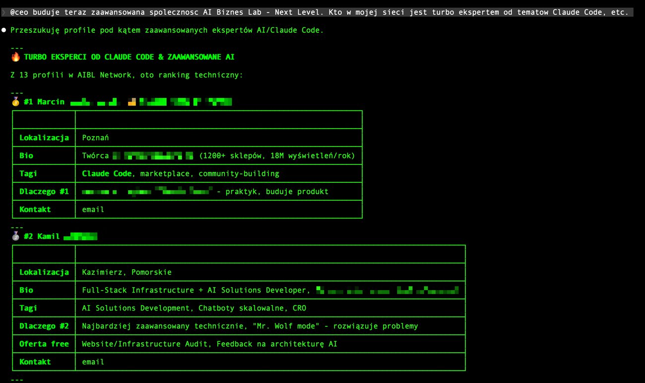 I.... zbudowałem swoją pierwszą aplikację, z której już korzystają użytkownicy. Tak... w mniej niż tydzień. Coś, co dawniej zajęłoby mi miesiące, jest już dostępne dla użytkowników. Nie mówię, że to może zrobić każdy (mam trochę doświadczenia), ale szybkość od idei do działającego produktu jest porażająca. Jak to działa (od strony usera) 1. User podpina swojego asystenta pod AI Biznes Lab Network. 2. Asystent AI robi publiczną wersję profilu i wrzuca do sieci. 3. Asystent AI wie, że jak potrzebuje pomocy, to może odpytać sieć. Klient, partner, podwykonawca, kontakty.