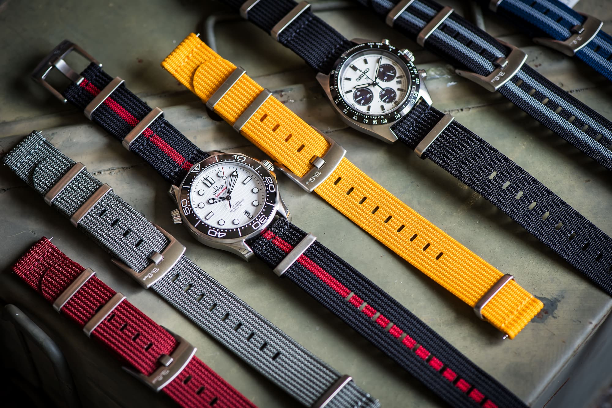 Mako straps are designed to look substantial without adding bulk. The two-piece format offers quick changes and a clean fit, while the visual depth mirrors a traditional double-pass strap. Finished in ribbed nylon for texture, durability, and a confident wrist presence.
