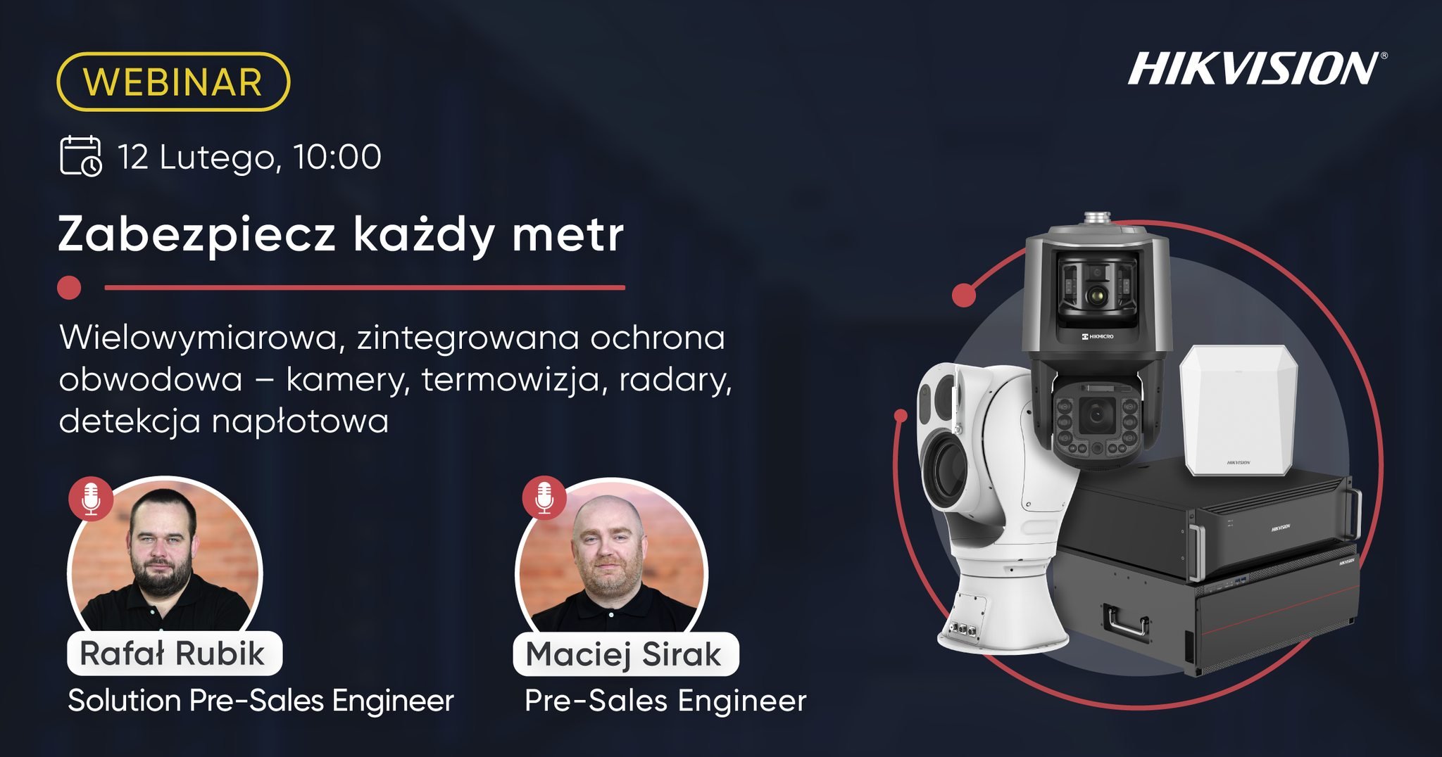 Skutecznie działająca ochrona obwodowa wymaga percepcji w wielu obszarach widma elektromagnetycznego. Kamery pasma widzialnego i kamery termowizyjne, z analityką opartą o wielkoskalowe modele AI, automatyczne śledzenie celów 3. generacji, radary mikrofalowe, detekcja wibracji, a wszystko to zintegrowane w jednym, skutecznym systemie.