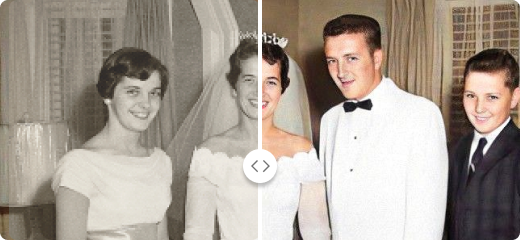 Użyj unikalnych funkcji MyHeritage do kolorowania, animowania, ulepszania i retuszowania zdjęć rodzinnych.