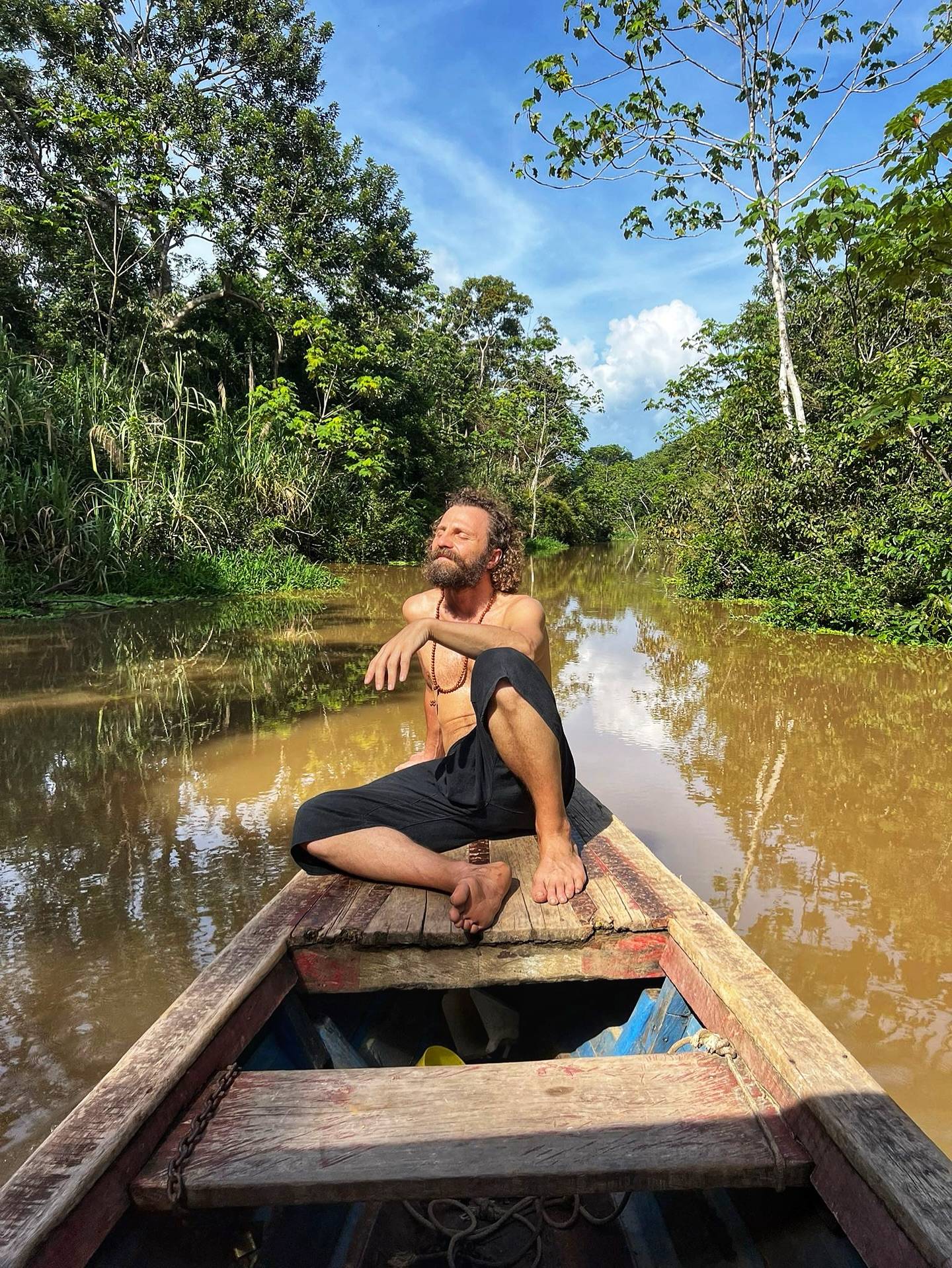 Jeden z moich ulubionych momentów, z ostatniej podróży do dżungli. Już po wszystkich ceremoniach, po zamknięciu diety. Na Amazonce. Wyciszyłem się tak, żeby stać się zupełnie pustym i słyszeć w sobie, czuć dżunglę dookoła, wodę, rośliny, zwierzęta, przestrzeń, ciepło słońca, którego trzeba unikać w trakcie diety z roślinami mistrzowskimi (master plants).