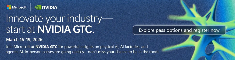 See the AI breakthroughs redefining the way technology companies build, accelerate, and deliver. Join Microsoft at NVIDIA GTC to explore physical AI, AI factories, and agentic AI. In-person passes are going quickly—don't miss your chance to be in the room. Explore pass options and register now.