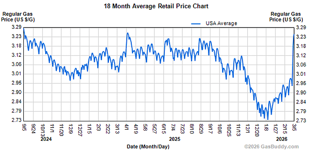 Welcome to the latest edition of Receipts. This week’s newsletter is about how Donald Trump’s war of choice in Iran is causing a surge in prices in energy markets, in what S&P Global warns may soon become “the largest oil supply disruption in history.” The conflict will likely raise costs for other consumer products, too, both because fuel is necessary for shipping freight around the world and because chemicals made from oil and gas are ingredients in lots of household goods. (Did you know that your toothpaste probably has petrochemicals in it?) It can feel a little crass to talk about the economic fallout of a war. Needless to say the most significant impact of the conflict is the loss of life, including of six U.S. service members to date. But most Americans still appear relatively unaware of the war itself, let alone its casualties. I suspect lots of people may start to come to terms with the reality of our new war in the Middle East only when they directly encounter the financial costs—like when they show up at the gas station and realize fuel prices have spiked. Is there other major economic fallout I’ve missed? If so, drop me a note to let me know. And if you’re not already a Bulwark+ member, I hope you’ll consider becoming one today. You’ll not only get access to all our locked content—including members-only newsletters and ad-free videos—but you’ll have the gratification that comes from knowing you’re making it possible for us to track the economic consequences of the conflict from every angle. You can join us right here: –Catherine Trump’s “Warflation” Has Just BegunIf he were trying to increase prices on purpose, would he be doing anything differently?AHEAD OF THIS NOVEMBER’S MIDTERM ELECTIONS, the White House has reportedly grown worried about high consumer prices, particularly for fuel. Trump aides are now “looking under every rock for ideas on improving energy prices, especially gasoline prices,” per Politico. Hmm. Have they perhaps tried not starting a war in the Middle East? Until quite recently, oil and gasoline prices had been a bright spot in the affordability fight, registering modest price declines since Trump took office. But since we bombed Iran, energy costs have risen sharply. To put things in perspective: Oil prices are up about 20 percent so far just this week. In other words: If Trump intended to start a war abroad to distract from problems at home, as some have proposed,¹ he has instead made his domestic problems much worse. Trump’s “warflation” has just begun. The top crude oil expert at S&P Global Energy warned that the military conflict has the potential to become “the largest oil supply disruption in history.” That’s because about a fifth of the world’s oil passes through the Strait of Hormuz, on Iran’s southern coast—or at least, it used to. Iran warned tankers and other commercial vessels not to transit the strait, and at least nine of them have now come under attack in the Gulf region. Shipping traffic through the strait has virtually stopped. Trump has offered U.S. Navy escorts (and insurance) to vessels transiting the strait, but as my colleague Ben Parker explained, that’s not a feasible solution. We’re now seeing the fallout: Iraq, for instance, slashed oil production by nearly 1.5 million barrels a day because it’s unable to load tankers and is running out of storage. Refineries in |