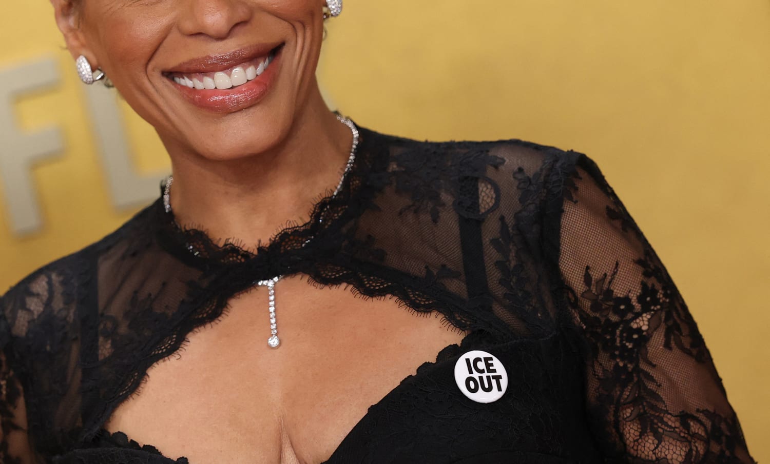Actor Liza Colon-Zayas wears a ICE OUT pin at the 32nd Annual Actor Awards. (Michael Tran / AFP via Getty Images) |