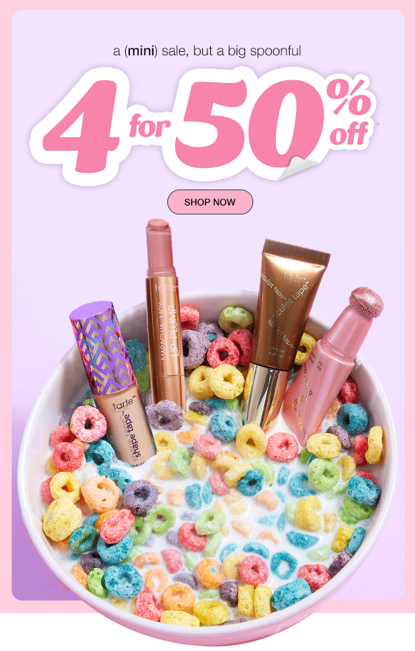 per order. Offer applies to in-stock items only and is valid while supplies last—no rain checks. Cannot be combined with other codes, offers, or discounts. Not valid on previous purchases or for cash or credit. eGift cards do not count toward qualifying items and are not eligible for discount. Taxes, shipping, duties, VAT, and other fees may apply. tarte™ has the right to cancel any orders due to unauthorized use of our website, technical error, or violation of our Terms & Conditions. Offer may change or end without notice. Valid from April 7, 2026 at 12:00 AM (ET) through April 11, 2026 at 9:00 AM (ET).