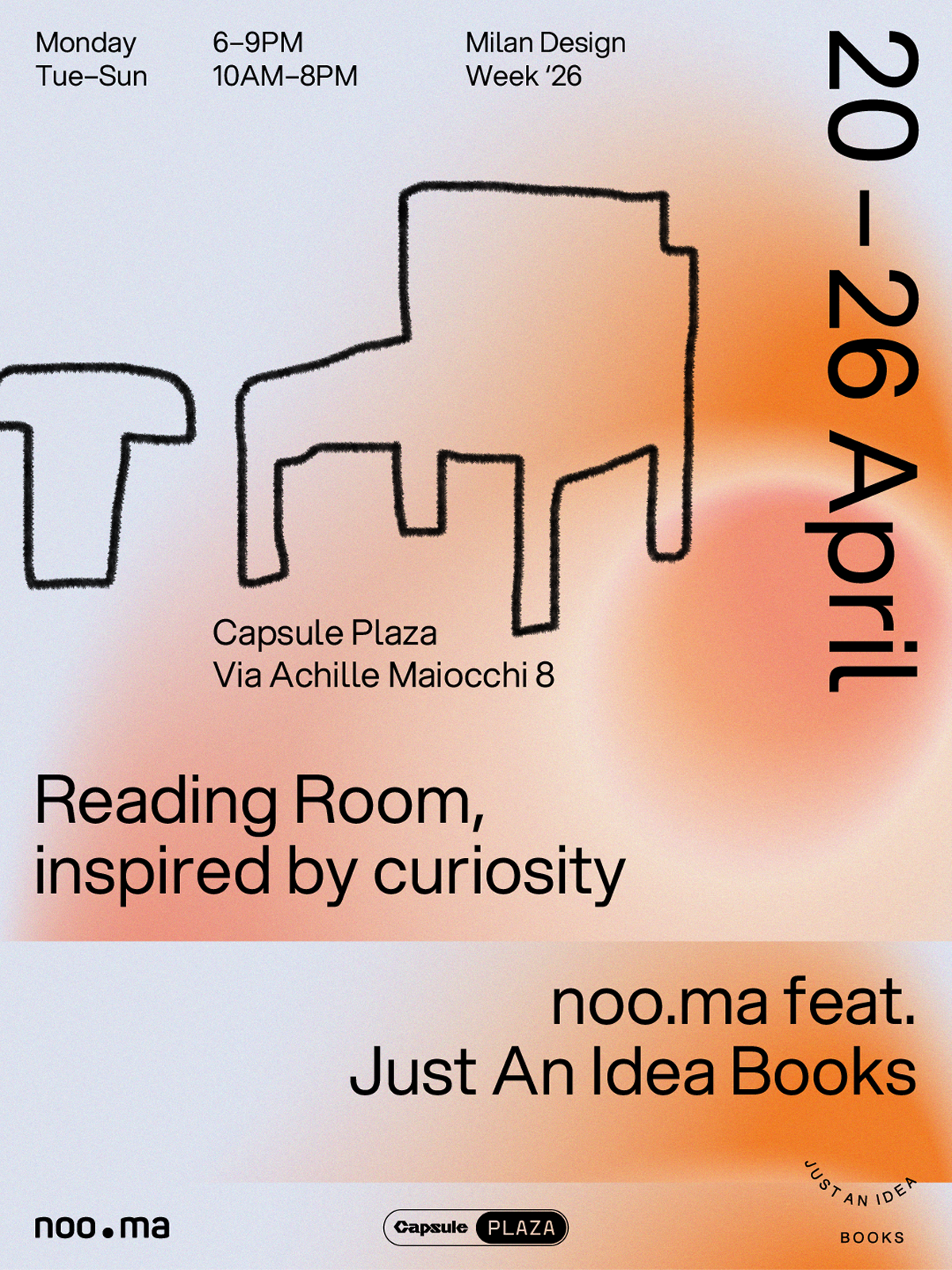 In collaboration with curator Sarah Andelman and her publishing house Just An Idea Books, noo.ma introduces a Reading Room installation, designed to foster comfort, balance, and the joy of creating.