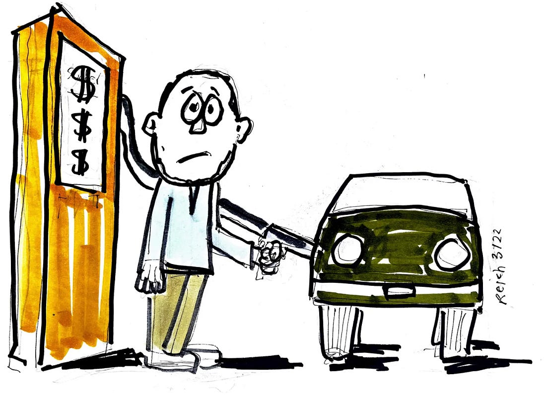 Friends, Trump gas — like Trump shoes, Trump cologne, the Trump Bible, Trump shoes, Trump NFTs, Trump crypto, Trump resorts, and Trump University — is turning out to be a ripoff. The average cost of gas tracked by the AAA was $4.17 a gallon yesterday. The station at the end of my street is selling it for over $5 now. If you drive a Mini-Cooper, as I do, which demands premium grade, you’re shelling out over well over $6. To put this in perspective, the average price for a gallon of gas in the U.S. the day before Trump launched his war was $2.98. Between then and today, the U.S. has experienced the largest increase in gas prices in 60 years, nearly a 40 percent jump. Despite the tentative cease-fire in the Middle East, a gallon of gas is expected to cost at least as much for quite a while. Even if Iran soon allows all tankers through the strait, Trump gas is likely to remain pricey because it’s likely to take months to repair and reconstruct the oil infrastructure that’s been destroyed in and around the Persian Gulf. Crude futures — bets that traders are making on the future price of crude — have returned to over $100 a barrel, which translates into over $4 a gallon extending for months. Given that the Strait of Hormuz is still largely closed, the actual price that global buyers are paying for real-world shipments is up around $150 a barrel. The price of gas is always the most conspicuous signal of affordability because most people know precisely how much a gallon of gas costs, down to the decimal point. It’s exhibited on every street corner with a gas station. They know what they pay to fill up their tanks. They’re aware of exactly when gas prices rise or drop, by how much, and what competitors are charging. No amount of Trump spin can change this reality. Numbers observed everyday on the street have a particular potency. Trump can’t accuse the heads of government bureaus that track inflation of being Democratic hacks and can’t fire fire them and replace them with people who will parrot his lies. Consumers know what they’re paying. Will the high price of Trump gas matter seven months from now when Americans go to the polls to elect the next House of Representatives and a third of the next Senate? Assuming we have free and fair elections, the answer is probably yes. Gas prices are a stronger predictor of presidential approval or disapproval than any other broad macroeconomic indicator, such as the overall rate of inflation or unemployment. Historically, every 10-cent increase in the price of gas correlates with a 0.6 percent decrease in presidential approval. And presidential approval or disapproval is, in turn, a stronger predictor of how the American public will vote in midterm elections than any other broad political measures, such as approval of Congress or of either political party. It’s been a nightmarish month in every respect. Trump’s war will go down as one of the worst political and humanitarian blunders in history. Thirteen U.S. military personnel died in the conflict. Hundreds more have been injured. A human rights group estimates that 1,665 civilians have been killed in Iran, including 248 children. America will be paying for this war for many years, in one way or another. Hence, it may be small comfort to think the war will likely contribute to a Democratic Congress starting next January. But I’ll take whatever comfort I can. So glad you can be here today. Please consider becoming a paid subscriber of this community so we can do even more. |