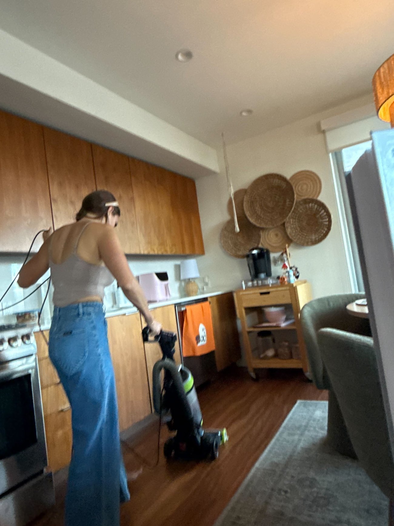 Because I have a passive income business, I usually just hang out in sweatpants, playing with Ellie.