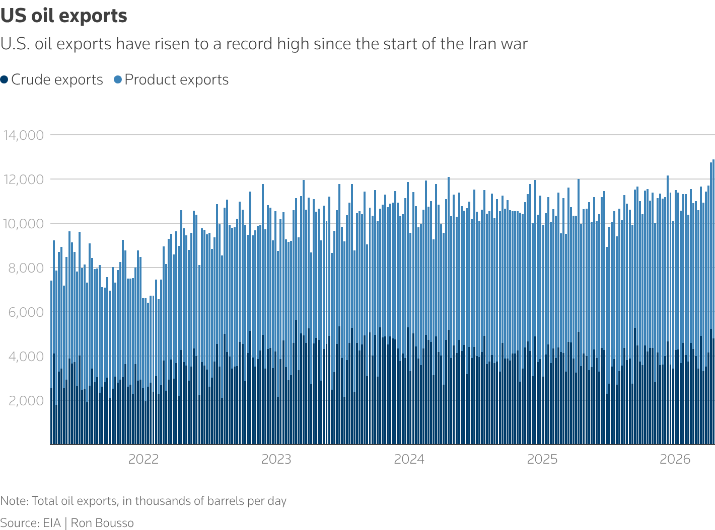 To help offset some of the impact from the collapse in oil shipments from the Middle East, U.S. oil firms have stepped in as key global swing players, cranking both output and exports to new highs in recent weeks. ROI's Ron Bousso digs into that below.