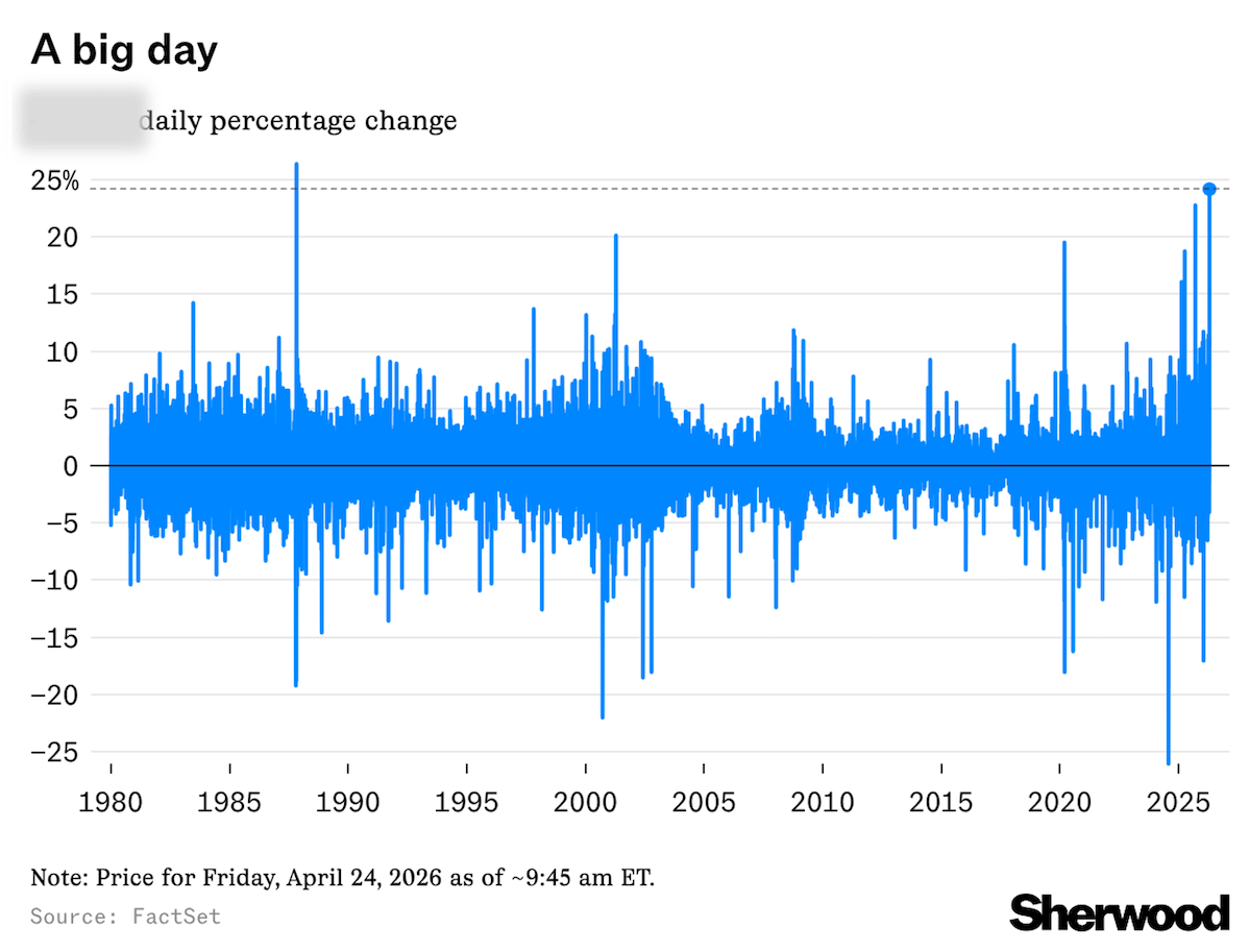 Off the charts: Which American corporate behemoth had its best trading day since the 1980s on Friday? [Answer below]. |