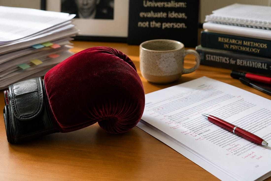 A few months ago I sat in the audience for a PhD student’s talk that was, well, not great. The student was clear and articulate. They were prepared. The talk was not great because the ideas weren’t fully worked through, had internal inconsistencies, and failed to account for obvious alternative explanations. Several professors in the audience shared my concerns and asked tough but respectful questions that gave the student pause. The student’s advisor probably should have pushed them harder before the talk, but in the room itself, other professors did what academia is supposed to do: they productively challenged a student to think more carefully about their work. A normal day at a university. And I’m glad to see normal days again, because for a while there, they weren’t. In recent years, a strange norm took hold. Critical feedback from someone with more power directed at someone with less became suspect, an example of punching down. Critiquing student work was a professor’s job, sure, but doing it publicly, especially online, became fraught. Thankfully the worst of this has receded, and most of us seem willing again to evaluate ideas on their merits regardless of who’s offering them. But plenty of folks still treat punching down as immoral, and I want to defend the practice. Scratch that. I want to defend the practice of punching, full stop. Up, down, sideways. I wrote about this last year as a paid post. Below is an edited version of that essay, now free for all. Punch back in the comments. The principle of “not punching down” has become sacrosanct in academic spaces, holding them together like a rug ties a room together (sorry, couldn't resist). The idea seems noble enough: those with more power shouldn't attack those with less. The privileged shouldn't criticize the marginalized, white people shouldn't challenge people of colour, the wealthy shouldn’t mock the poor. You get the picture; it's about protecting the vulnerable. But like many well-intentioned principles, this one deserves unpacking. I recently learned that sports writers coined the term “punching down” in the mid-20th century to describe boxers fighting above or below their weight class. It wasn't until the early 2000s that the term morphed into what we know today, a metaphor about power dynamics and protecting marginalized groups from abuse by the powerful. A few years ago, my friend, UofT colleague, and podcast co-host Yoel Inbar found himself in hot water for criticizing a psychology paper on Twitter and on our Two Psychologists Four Beers podcast. The paper claimed that attractive women don't feel cold outside of nightclubs on cold winter nights even when they're barely dressed. Some hot women, apparently, don't get cold. Yes, you read that right. And, yes, this was a real published article. Yoel did what scientists are supposed to do: he scrutinized the methods and raised concerns about the analysis and conclusions. But instead of sparking a healthy scientific debate, something else happened instead. Because the paper's lead author was a graduate student and a woman, the response was a swift: "How dare you punch down!" I saw very little engagement with what Yoel actually said. Instead, there was a rush of condemnation that Yoel’s criticism was inappropriate, even immoral. I even saw one histrionic post from someone who not only defended the paper but then accused the entire open science community of bad faith, questioning the motives of a group he previously identified with. He might as well have said: Shameless little bullies. Here's another example from academic Twitter. A Latino postdoc published a qualitative study about Black and Latino people's experiences with policing and discovered that even without handcuffs or sirens, the police leaves behind trauma, paranoia, and the constant feeling of being watched. A white professor, doing what professors are supposed to do, pointed out something pretty basic: every single person interviewed for this study came from an organization dedicated to police abolition and political activism. In other words, maybe, just maybe, the findings tell us more about how police abolitionists experience the police than about how the average young person of colour does. Instead of engaging with this pretty reasonable point, though, the postdoc played the power dynamics card, complaining about a senior scholar publicly criticizing a junior scholar. Before long, the whole thing devolved into a mess of accusations about white tenured professors attacking scholars of colour. The actual scientific question—you know, the one about selection bias—got buried under an avalanche of takes about power, privilege, and who has the right to criticize whom. The Dude would not abide. |