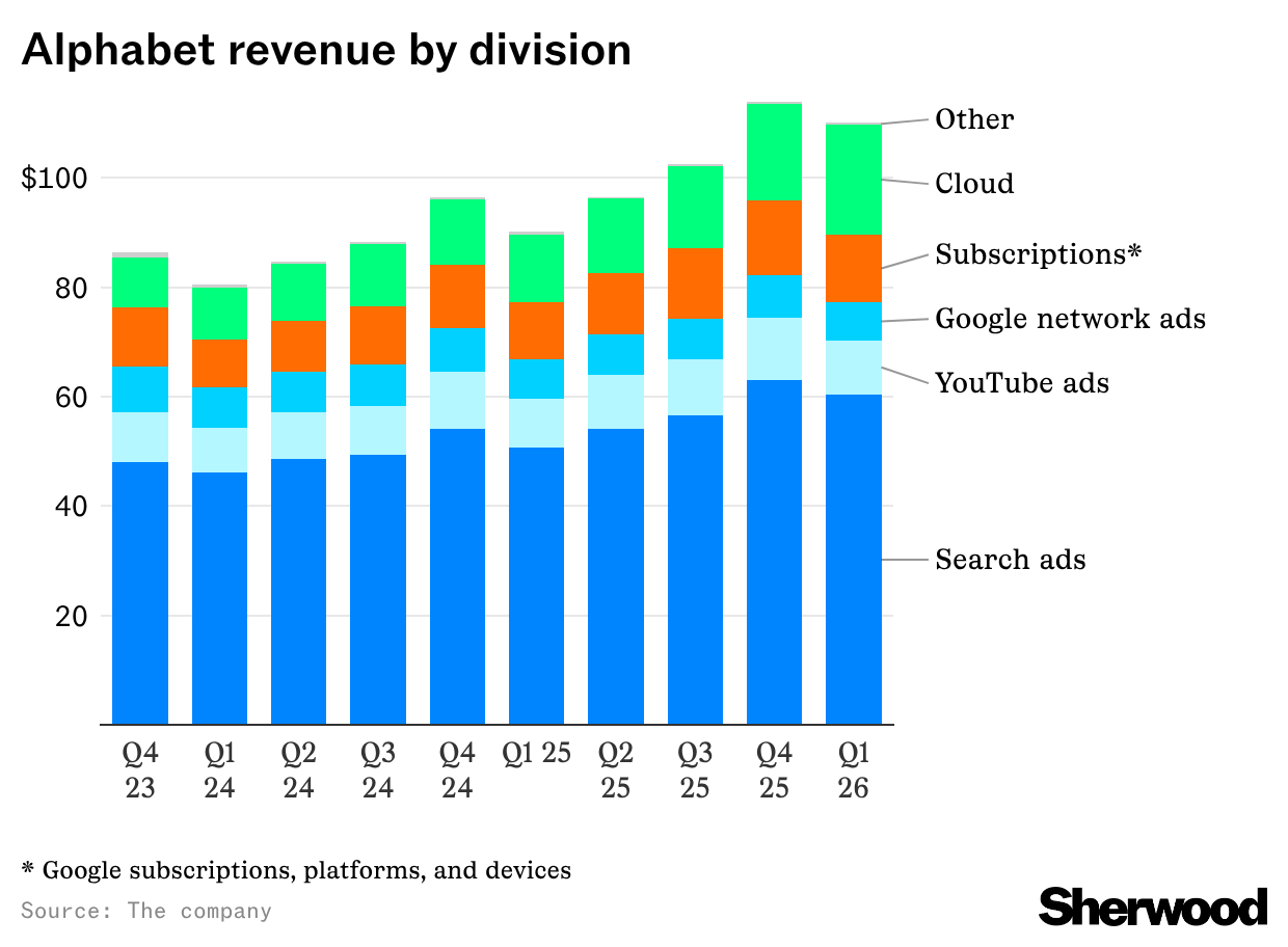Alphabet’s earnings and revenue blew past expectations. Alphabet’s profit was lifted by blockbuster gains on some of its equity investments — it said the value of its nonmarketable equity securities helped power a net gain of $37.7 billion. The company’s private investments include stakes in Anthropic and SpaceX.