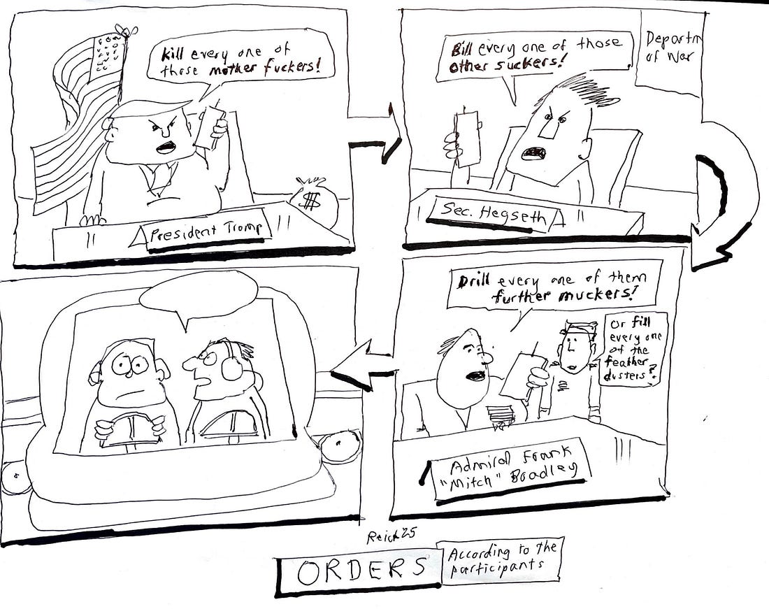 (Congratulations, Donald Hodgins.) Runners-up: “Chill every single one of those southern druggers.” (Congratulations, Carol Nylen.) “Spill every one of those cluster busters!” (Congratulations, Laurence Hoffmann.) “Thrill every one of those oyster shuckers!” (Congratulations, Ellen Douras.) “Grill every one of those justice duckers!” (Congratulations, MM.) “Trump says he’s gonna thrill all your Mother’s lovers.” (Congratulations, Marak Robokoff.) “Should I put that in writing, sir, or just on your indictment?” (Congratulations, Xplisset.) “Let’s leave it blank. This is no joke. And there’s nothing funny anyone could ever say about it.” (Congratulations, Scott Bentley.) So glad you can be here today. Please consider becoming a paid subscriber of this community so we can do even more. |