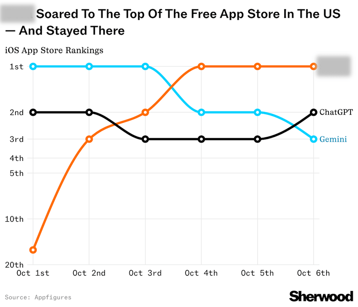 Off the charts: Which new entry from OpenAI has been sitting in the number one spot on the US free App Store over the weekend, despite still being invite-only? [Answer below]. |