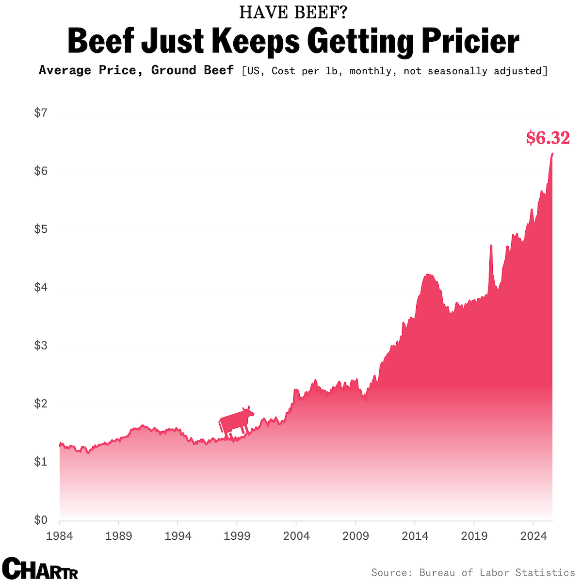 While the US has long been a net exporter of beef, imports to the country are now reaching new heights as the nation tries to resolve its domestic beef supply issues, which largely stem from underinvestment in America’s cattle herd a decade ago. Even with President Donald Trump’s “Liberation Day” tariffs in place, the US was importing 30% more beef in the first half of the year than the same period in 2024, as it looked to contain soaring beef prices.