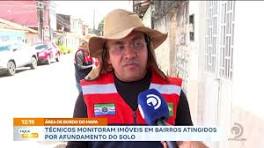 Técnicos monitoram imóveis em bairros atingidos por afundamento do solo - TNH1 Técnicos monitoram imóveis em bairros atingidos por afundamento do solo. Veja mais detalhe sobre o monitoramento, na reportagem de Maria Maciel.