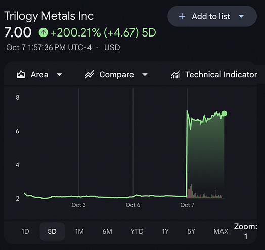 Welcome to Popular Information, a newsletter dedicated to accountability journalism. On April 6, 2024, a procession of Range Rovers, Aston Martins, and Bentleys rolled up to the Palm Beach mansion of billionaire John Paulson. The occasion was a glitzy fundraiser for Donald Trump’s presidential campaign, with individual tickets running from $250,000 to $814,600. “Tonight, we raised an historic $50.5 million for the re-election of President Trump,” Paulson said in a statement. “This sold-out event has raised the most in a single political fundraiser in history.” Paulson has been hosting high-dollar fundraisers for Trump since 2016. On October 6, 2025, Trump returned the favor. In a Presidential Memorandum, Trump announced that he was approving the construction of a 211-mile road through the Alaskan wilderness that will allow for the mining of copper, cobalt, gold, and other valuable minerals located in the Ambler Mining District. The project, known as Ambler Road, was rejected during the Biden administration after an environmental review “determined the project would threaten caribou and other wildlife and harm Alaska Native tribes that rely on hunting and fishing.” Trump’s order memorandum directs “the federal Bureau of Land Management, National Park Service and U.S. Army Corps of Engineers to reissue necessary permits to construct the road.” In a White House ceremony, Trump said the mine “is something that should’ve been long operating and making billions of dollars for our country.” A White House fact sheet claims the decision “is in the public interest given our need for access to domestic critical minerals, and there is no economically feasible and prudent alternative route.” But there are no assurances that the minerals obtained from the mine will be sold domestically. The two companies that will operate the mine are South32 Limited, an Australian company, and Trilogy Metals, based in Canada. Trump also announced that, alongside the approval, the United States will purchase a 10% stake in Trilogy Metals. Paulson owns 14,326,996 shares of Trilogy Metals, about 8.7% of the company, making him the company’s third-largest shareholder. After Trump announced he was approving Ambler Road, the value of Paulson’s shares in Trilogy Metals increased from just under $30 million to over $100 million. The entire value of Trilogy Metals is tied to the Ambler Mining District project because it has no other business ventures. The mine is projected to produce minerals worth up to $7 billion. After Trump took office, Paulson continued to provide financial support to Trump’s political priorities. In June, for example, Paulson donated $250,000 to MAGA KY, a super PAC targeting Congressman Thomas Massie (R-KY). Trump has made ousting Massie, who is currently trying to force a vote to release the Epstein files, a top priority. Paulson is not just a donor and fundraiser for Trump. During the 2016 presidential campaign, Paulson served as one of Trump’s economic advisors. Trump has also invested in Paulson’s hedge fund. In 2024, Paulson was mentioned as a potential Treasury Secretary for the incoming Trump administration, but he removed his name from consideration due to his financial entanglements: