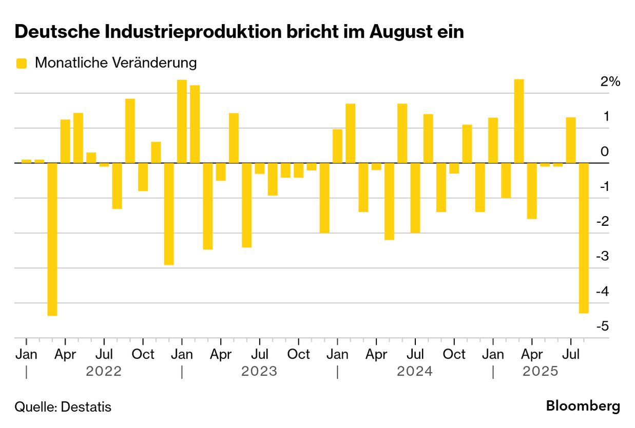 Es ist eine faustdicke Überraschung, aber leider nicht im positiven Sinne: Die Industrieproduktion in Deutschland ist im August um 4,3% gesunken — so stark wie zuletzt Anfang 2022. Im größten Industriebereich, der Automobilbranche, steht sogar ein sattes Minus von 18,5% zu Buche. Volkswirte hatten zwar einen Rückgang erwartet, aber beileibe nicht im dem Ausmaß. Nun hat dieser Einbruch in der Fahrzeugindustrie zwar wohl auch damit zu tun, dass die Werksferien in diesem Jahr anders als sonst üblich überwiegend auf den August fielen, wie auch das Bundeswirtschaftsministerium betonte. Aber selbst ohne den Automobilsektor hätte es ein kräftiges Produktionsminus gegeben. Zusammen mit dem unerwarteten Rückgang bei den Auftragseingängen bedeutet das also einen herben Schlag für alle Hoffnungen auf einen raschen Aufschwung. Umso wichtiger ist deshalb, dass die Bundesregierung von Kanzler Friedrich Merz nun schnell zu Potte kommt, damit die Konjunkturerholung zumindest im Jahr 2026 Fahrt aufnimmt, wie es auch die heute anstehende neue Wachstumsprognose der Bundesregierung verspricht. Und das nicht nur über höhere Ausgaben, sondern auch mit dem angekündigten “Herbst der Reformen”. Es sei “Zeit, auf dem Reformpfad Tempo zu machen”, mahnte auch Bundesbankpräsident Joachim Nagel jetzt in Athen. Nagel lobte die dortigen Anstrengungen als “Inspiration” und “Lektion” für andere Länder – sein Heimatland inklusive. Was Marktteilnehmer heute noch bewegen könnte, berichten Ihnen Verena Sepp, Rainer Bürgin, Annika Reichelt und Stephan Kahl: Wenig Antrieb, Robotik-M&A, gefragter Wolkenkratzer, Verschuldungs-Freunde und Boom oder Blase? | |