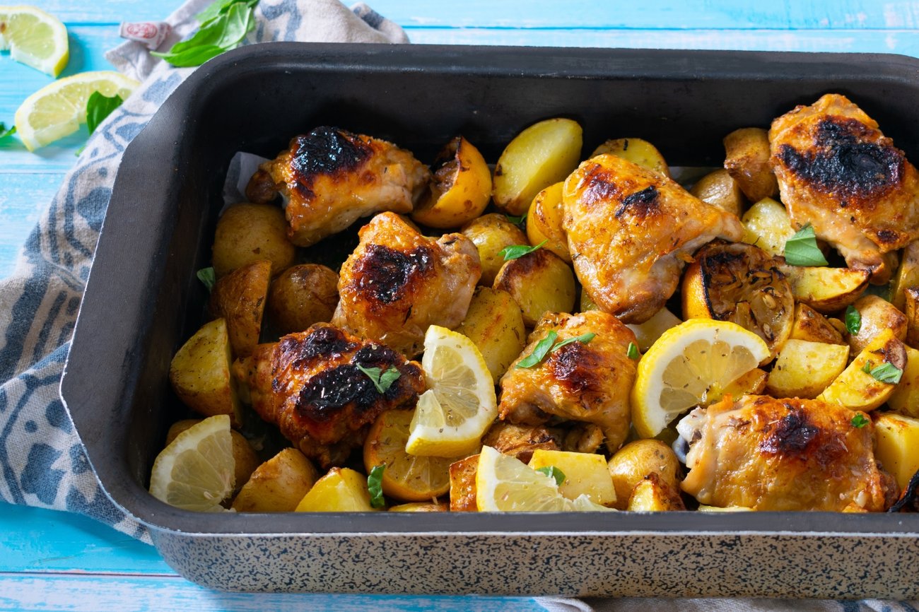 The prep couldn’t be simpler: just cut your potatoes and lemon, add chicken, toss everything with extra virgin olive oil and a generous handful of Greek herbs, and roast until golden and fragrant. The result? A wholesome and hearty dish that fills your kitchen with the aromas of a Greek taverna and makes dinner feel special—even on a weeknight.