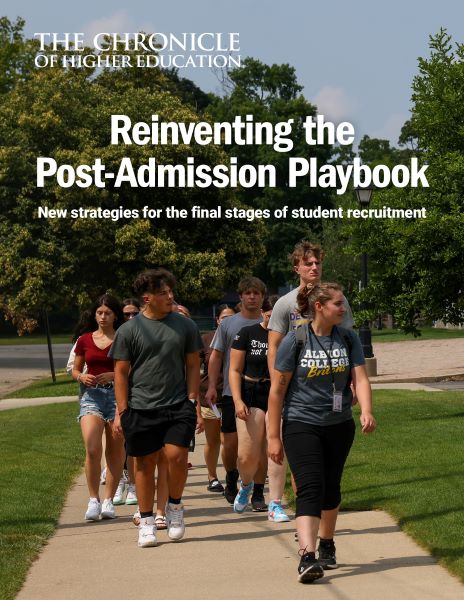 Over the years, this crucial final phase of the admissions cycle has become more complicated — and more fraught with uncertainty — for students and colleges alike. Reinventing the Post-Admission Playbook, a report by The Chronicle’s Eric Hoover, will help you understand how colleges are adjusting their post-admission playbooks. With this report, you’ll gain a better understanding of how colleges can successfully navigate the critical final phases of the admissions process.