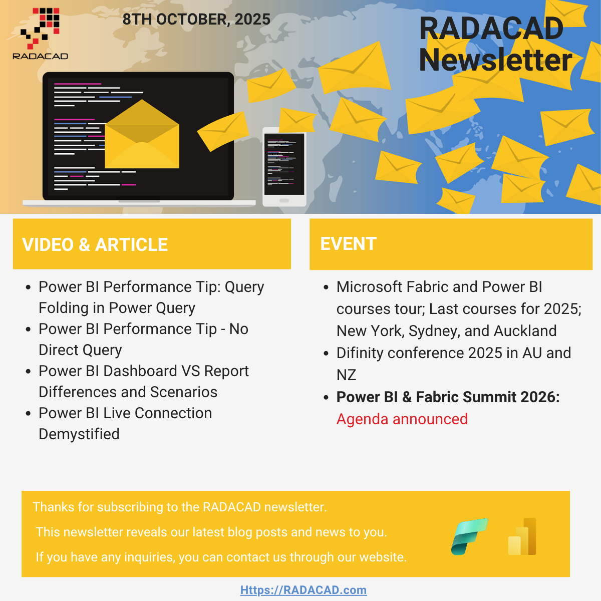 We hope you are doing well. The agenda for the Power BI & Fabric Summit, the biggest and most popular virtual event of the year in this subject area, is available now with over 150 speakers. The early-bird registration for some cities on the Fabric and Power BI world tour is closing soon. We also have some new blog articles and videos that help you with Power BI and Fabric work. Let's get into all of that in today's newsletter.