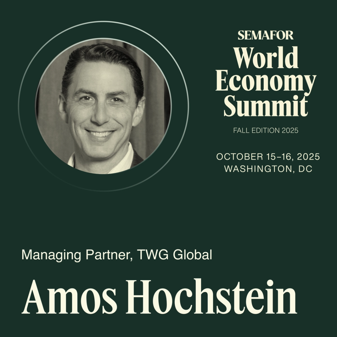 Amos Hochstein, Managing Partner, TWG Global, will join the stage at the Fall Edition of Semafor’s World Economy Summit. Hosted in the Gallup Great Hall and spanning eight sessions over two days, the summit will feature on-the-record interviews on the state of global growth and finance, AI advancements, powering global energy needs, and the forces reshaping the world economy. Each session brings together the leaders and forces most directly shaping the global economy, with programming powered by Semafor’s world-class editorial and executive leadership.