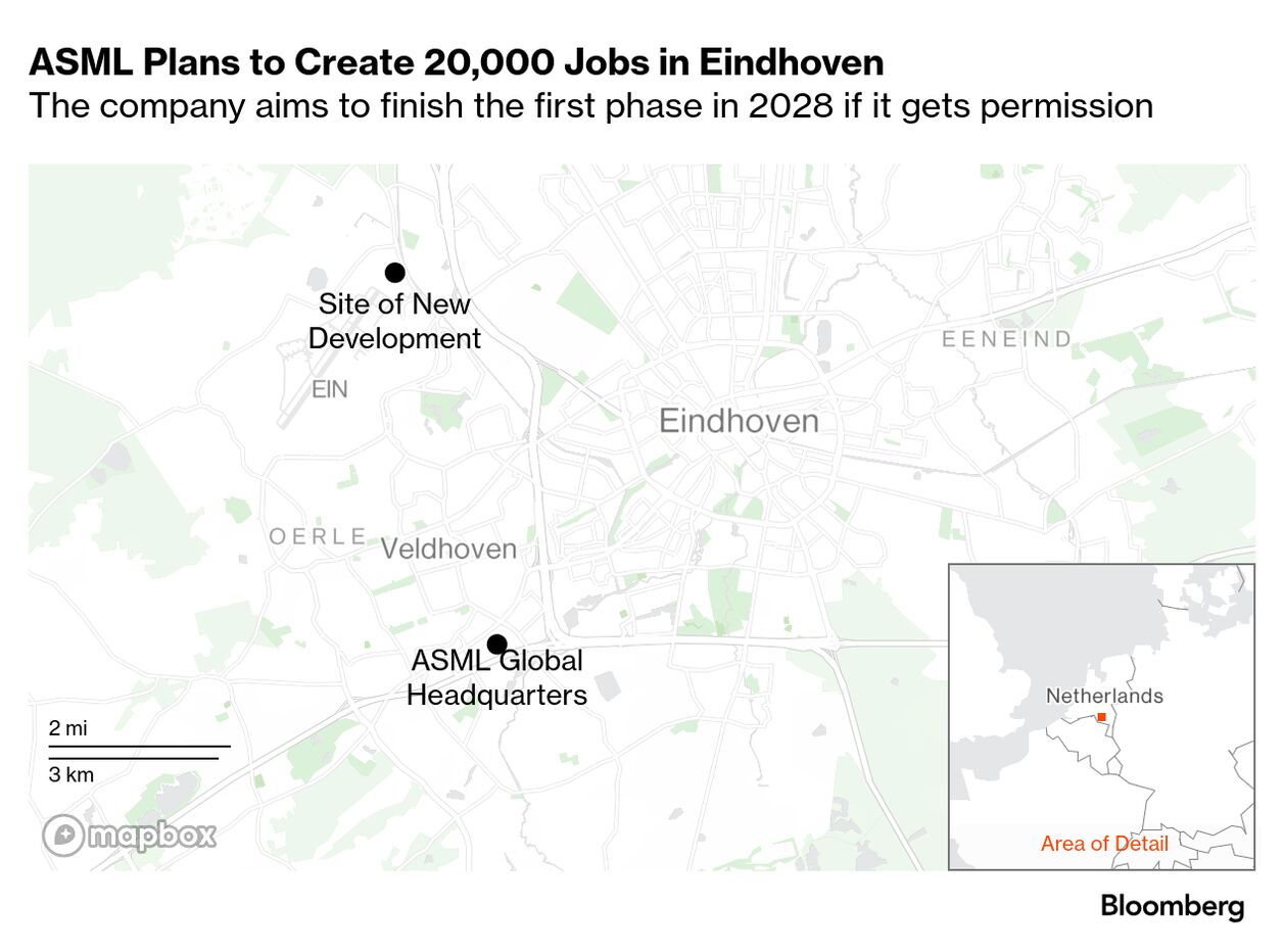 - Chip equipment maker ASML is planning a 100-hectare (247 acre) expansion to meet growth targets, and much is riding on the company’s success.