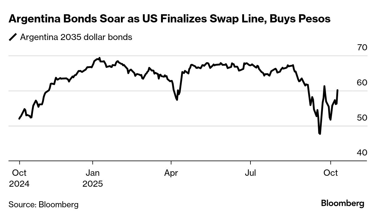 US Treasury Secretary Scott Bessent announced a lifeline for Argentina yesterday that’s designed to rescue the country’s financial markets from deepening turmoil and get President Javier Milei — a close ally of the Trump administration — out of a hole. The essence of Bessent’s $20 billion bet is that, with US financial muscle behind him, Milei can win midterm elections in two weeks. And then, with a supportive congress, get his economic program on track and investors onside once again. Analysts say that’s not impossible, just hard.