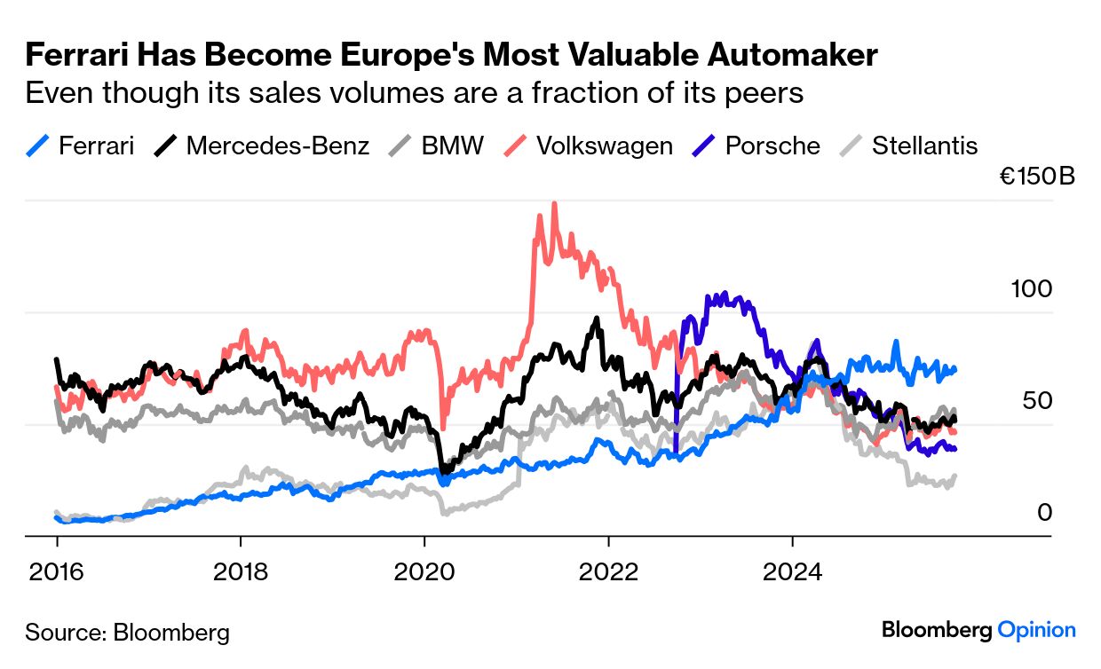 This is Bloomberg Opinion Today, a sporty spin around the track with Bloomberg Opinion’s opinions. Sign up here. Is Your Ferrari Worth Its Weight in Gold? | It’s hard to calculate the answer to that question — with the metal seemingly on its skyrocketing path (with lots of expectations for dramatic declines). What’s certain is that Ferrari is Europe’s premier carmaker — better than Mercedes-Benz and Porsche, whose falling fortunes are a headache for the German economy. The Italian luxury auto producer, on the other hand, provides Master-of-the-Universe status if you can survive the sticker shock. As Chris Bryant says, “Order books extend into 2027 and, compared with struggling luxury rivals like Porsche AG and Aston Martin Lagonda Global Holdings Plc, Ferrari’s profit margins are a class apart.” Elsewhere in Europe, as Lionel Laurent writes, car owners are mad as hell and becoming a political force. That’s the case in the Czech Republic, where the Motorists Party embodies the dissatisfaction of younger male voters. Their longing for affordable roadsters and the freedom of the road — old-fashioned symbols of masculinity — is shifting them and their votes into the populist lane. Could Ferrari owners ever be as disenfranchised as Motorist Party members? Chris says that one reason for buying the Italian supercars is the belief that the vehicles will hold their value. But he notes that Ferrari resales haven’t kept up with the original outlays. In any case, Ferrari aficionados are a tiny constituency. The company that Enzo built sells fewer than 14,000 vehicles a year. That’s a terrifyingly small unit sales figure for the most profitable automaker in Europe. Oh, I did the calculations. If a Ferrari more or less weighs 3,252 pounds and gold is currently around $4,000 an ounce, then a Ferrari’s weight in gold would bring you more than $208 million. Ferrari’s latest hypercar, the F80, has a price tag of $4.18 million. Maybe another reason investors are going for the gold. Guess Who’s Growing Stronger? | The fact that Vietnam’s economy is burgeoning isn’t news anymore. Sustaining it, however, is an ongoing concern. The goal is a super-high 8.5%, but Daniel Moss notes that the country “did better than almost anyone expected last quarter and the outlook is still solid. Even coming close would be a win, given the tariffs imposed by US President Donald Trump.”