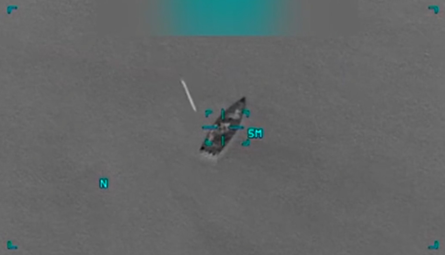 A 33-second video included in a social media post by the president showed an aerial shot of a boat that’s struck by a missile and explodes in a fireball.